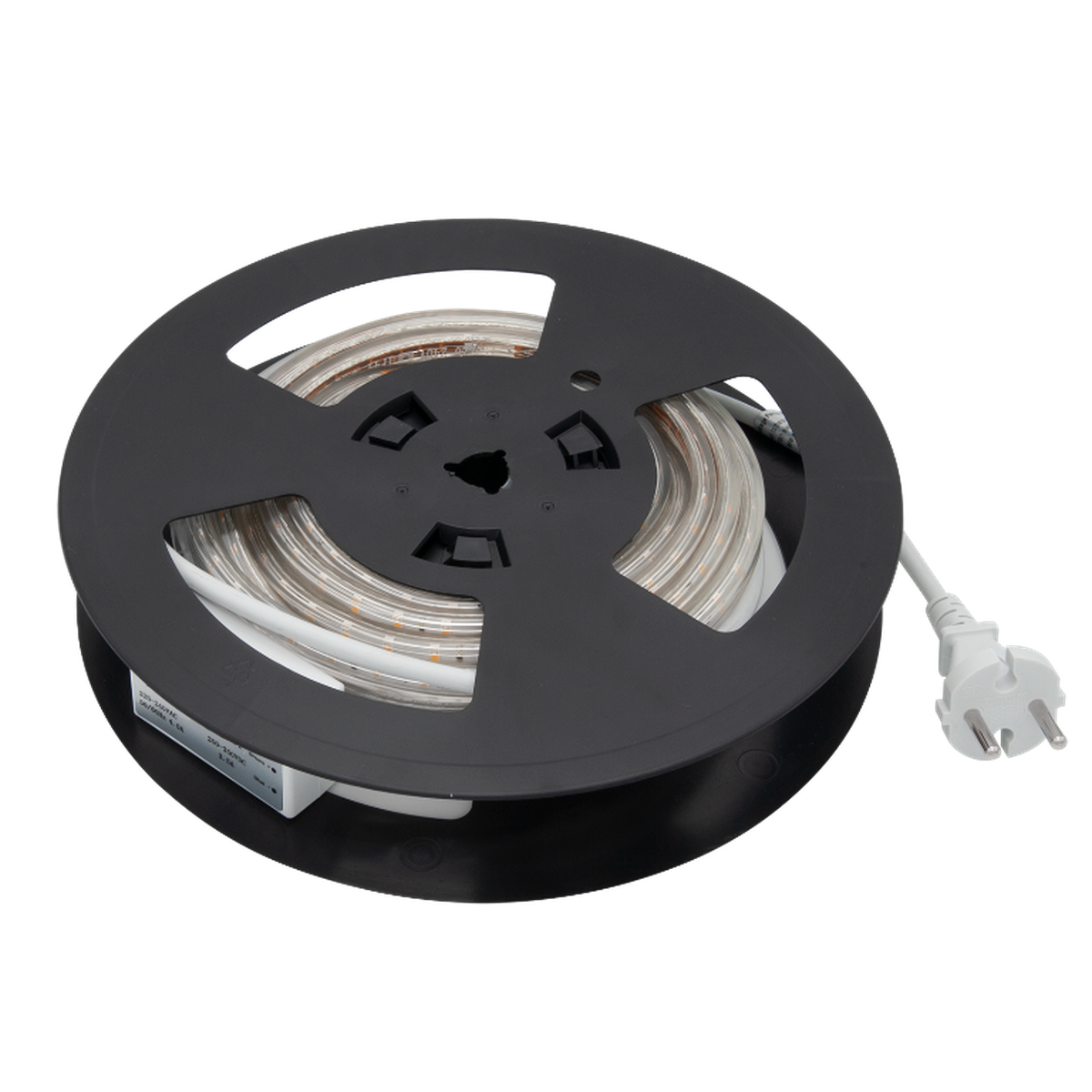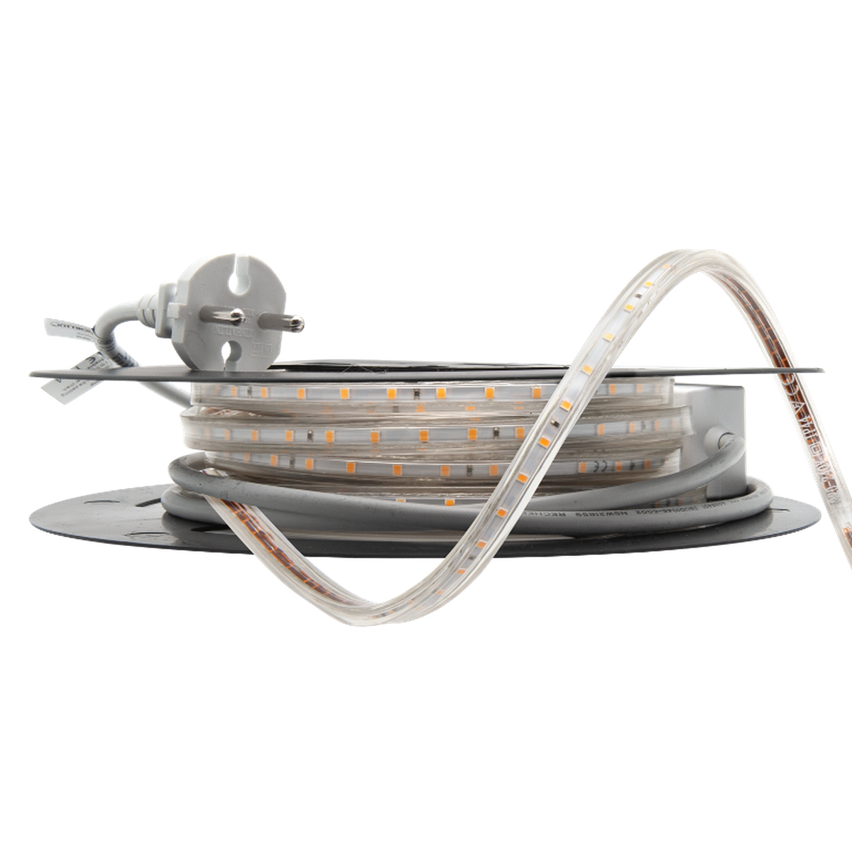 Dimbar LED-stripe på 10m klar for bruk. LED-stripen leveres med påmontert Schuko støpsel for rask og sikker montering. IP65 (sprutsikker) gjør at denne også egner seg for montering utendørs og i våtrom sone 2. Leveres i 3000K med CRI>90 sikrer korrekt fargegjengivelse. 20stk monteringsklips medfølger. Kan kappes hver 100cm.
