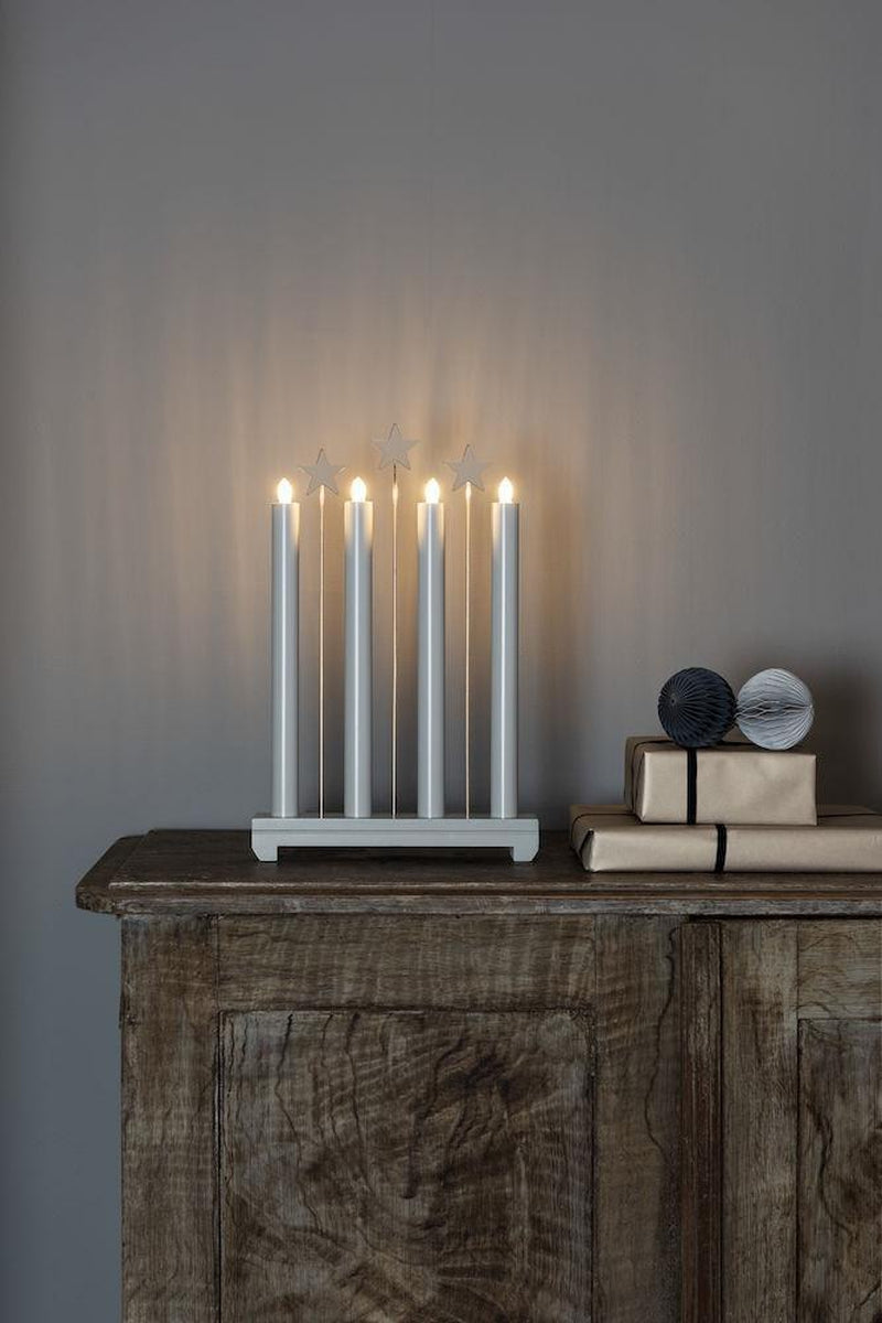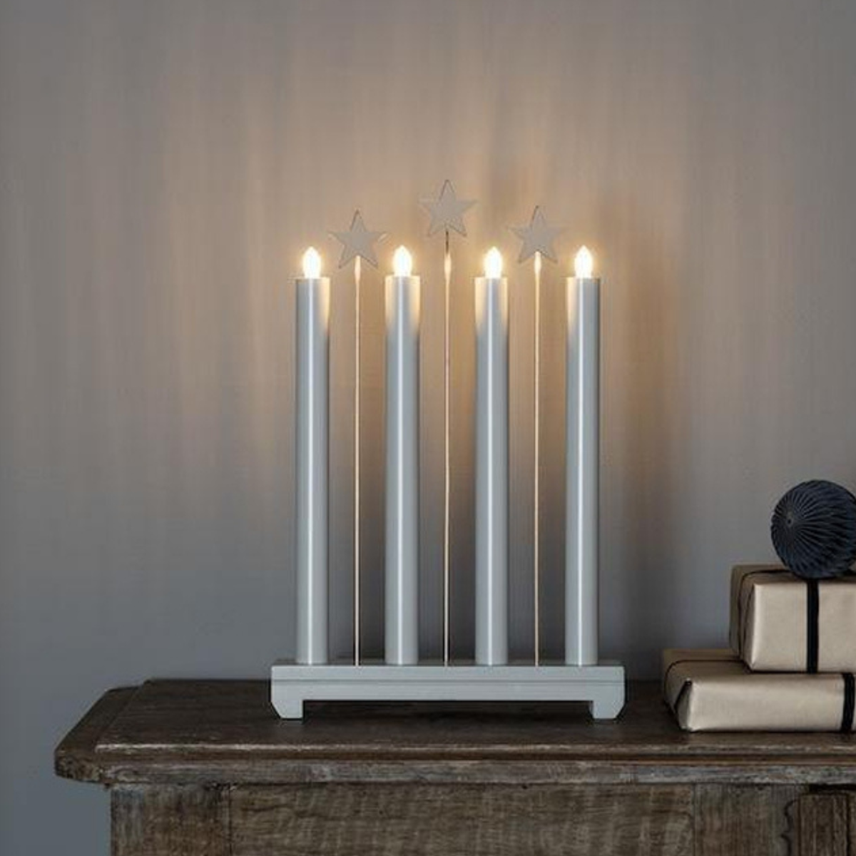 Adventsstake med stjerner - Lys grå-Julebelysning adventsstake-Konstsmide-3974-310-Lightup.no