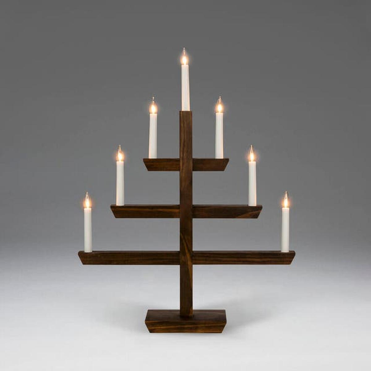 Elegant adventslysestake i beiset treverk som sprer et varmt og stemningsfullt lys i den mørkeste tiden av året. Med syv lys og et tidløst design passer den like fint i vinduet som på bordet – en elsket julepynt som skaper hygge og tradisjon, år etter år.