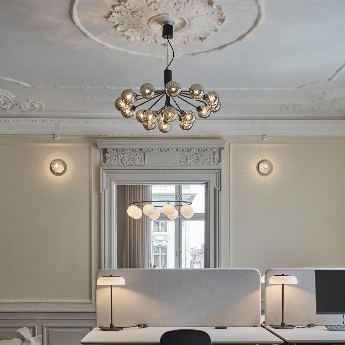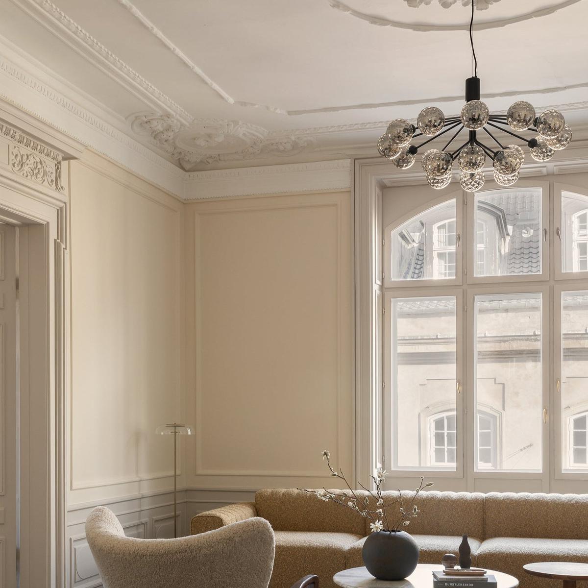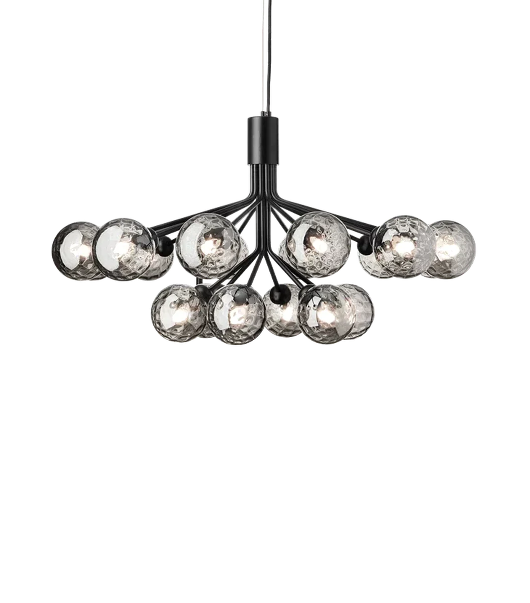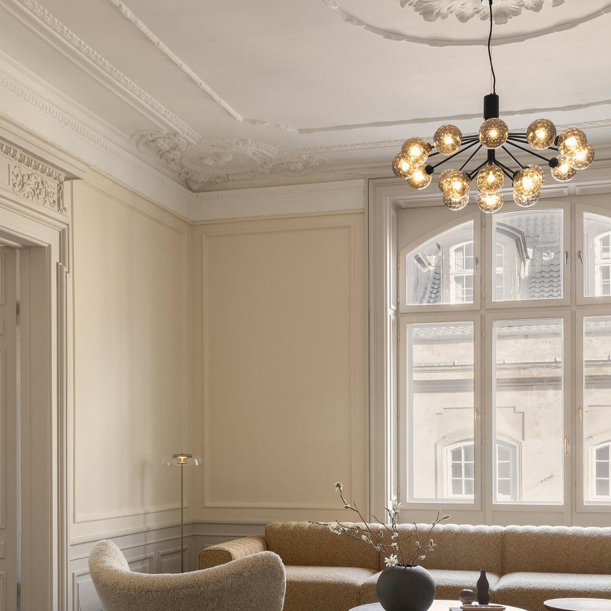 Inspirert av blomster har Sofie Refer designet Apiales-kolleksjonen. Armene på Apiales lysekrone minner om blomsterstilker som sprer et diffust og vakkert lys. Apiales 18, med sine 90 cm i diameter, passer som midtpunktet i foajeen, i en stor stue eller over et stort spisebord.