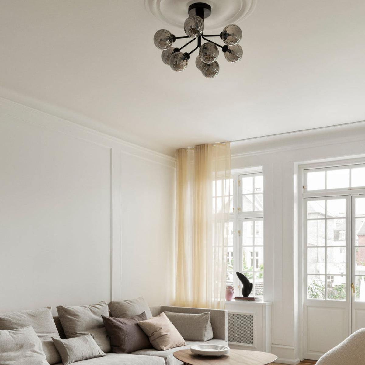Inspirert av blomster har Sofie Refer designet Apiales-kolleksjonen. Armene på Apiales lysekrone minner om blomsterstilker som sprer et diffust og vakkert lys. Apiales 9 Ceiling har en lav høyde på bare 40 cm.