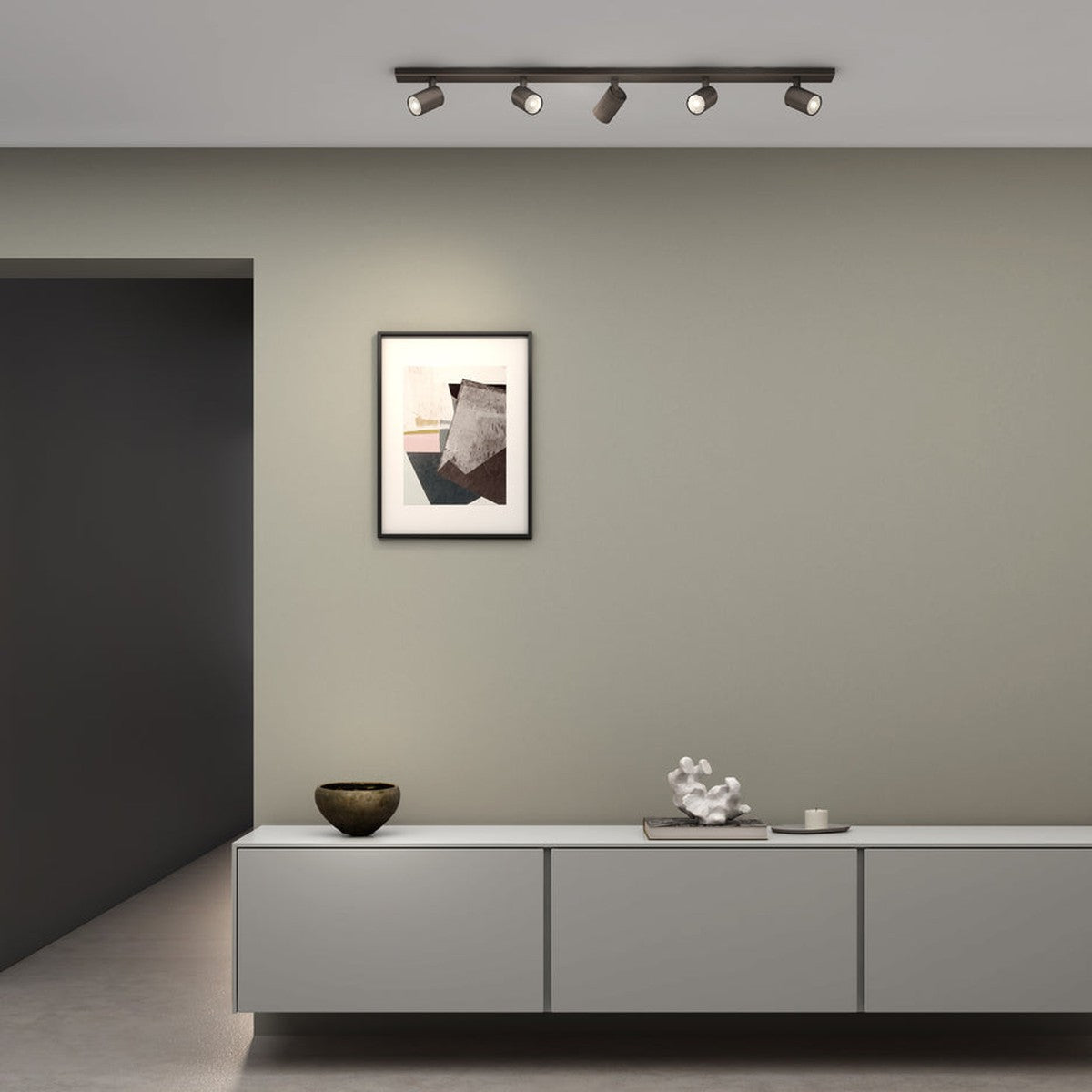 Eksklusiv spotskinne i bronse, fra Astro. Spotskinnen kan dimmes ved bruk av dimbare lyspærer og ekstern dimmer. Du behøver 5 stk lyspærer med GU10-sokkel.