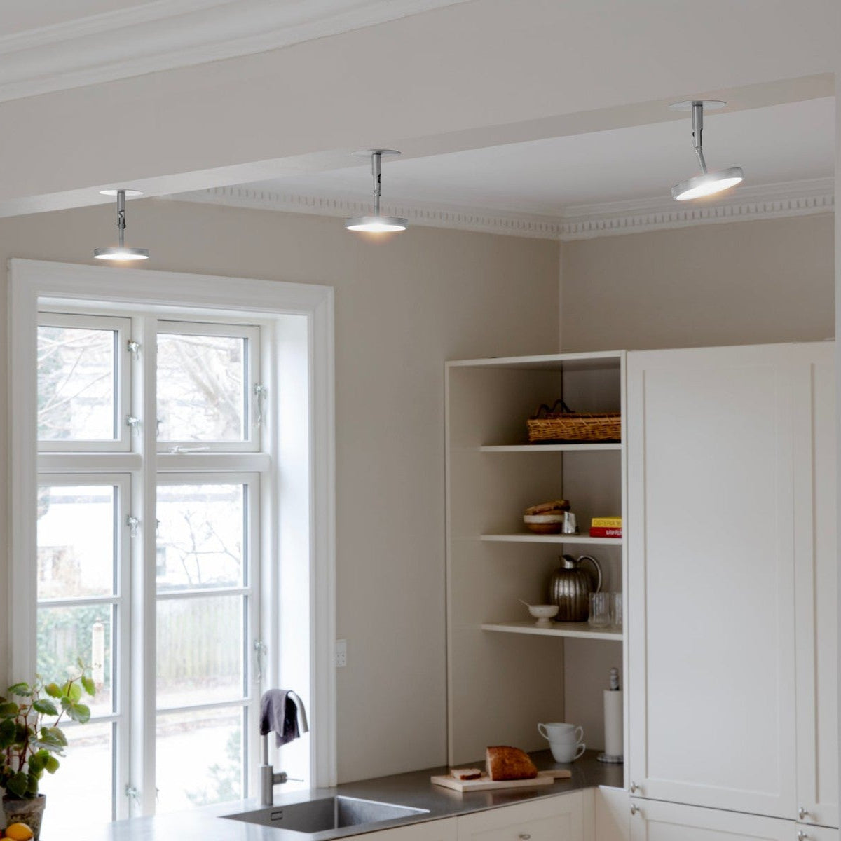 Skjermen på lampen er fleksibel, slik at du kan justere vinkelen på lyset og sørge for belysning akkurat der du ønsker det. Asteria Spot kan installeres innfelt eller monteres direkte på overflaten av et tak eller en vegg.
