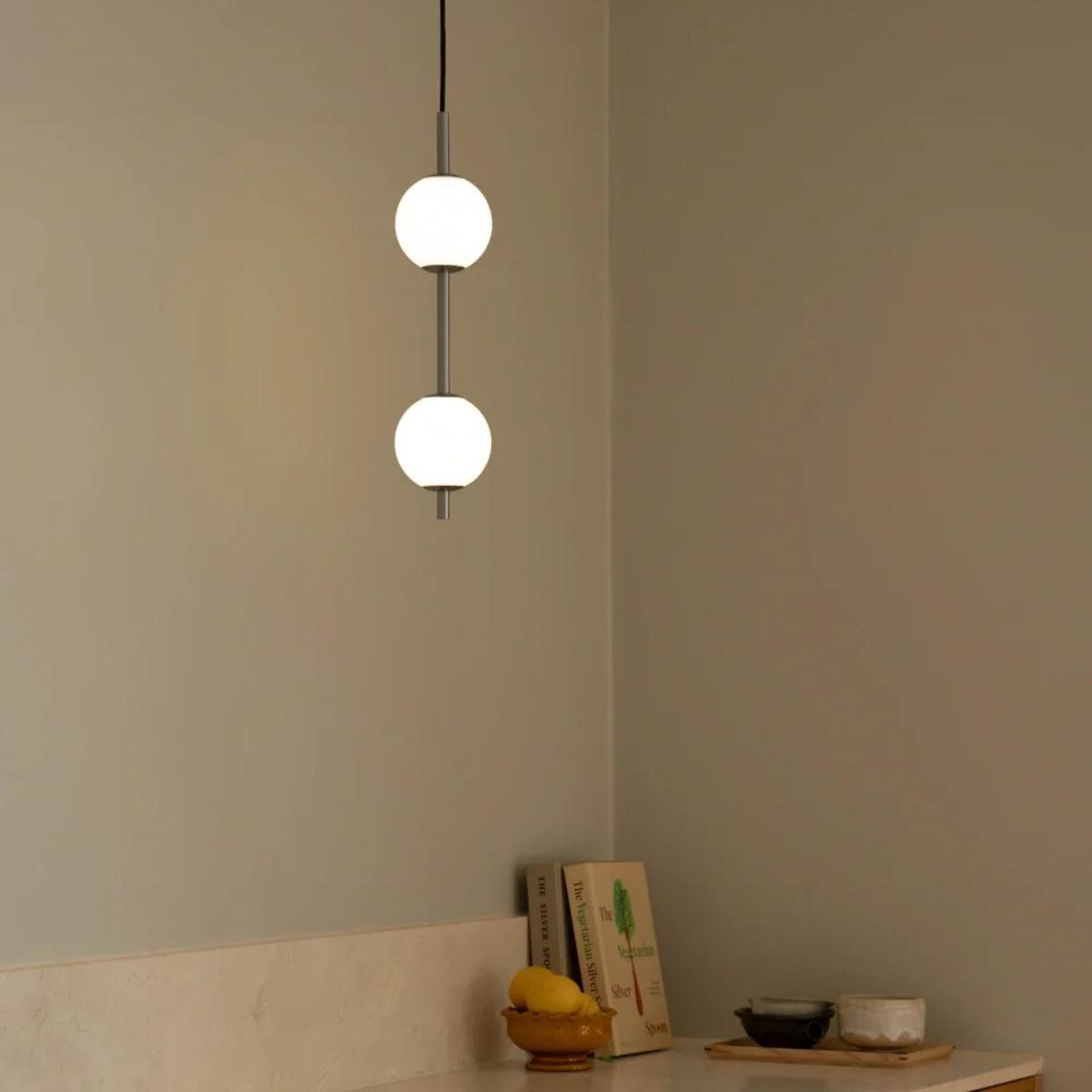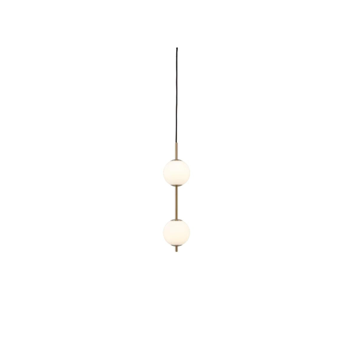 Med messingdetaljer og munnblåste opalglasskuler, utstråler Audrey en fortryllende varme som minner om lysende perler. Lampen kan dimmes med en ekstern dimmer, og de delikate kuplene sprer et behagelig lys som skaper en avslappende atmosfære.
