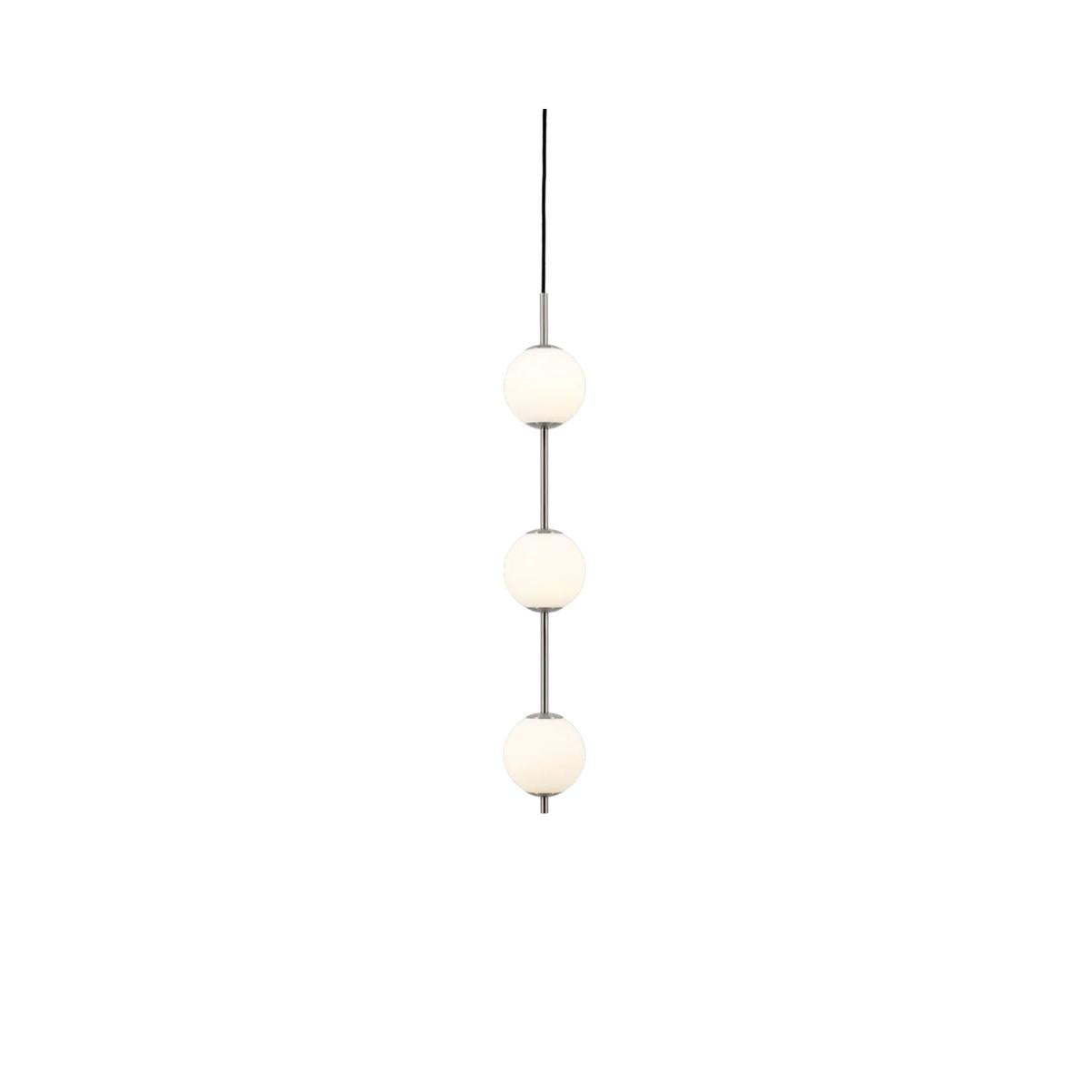 Med messing/krom detaljer og munnblåste opalglasskuler, utstråler Audrey en fortryllende varme som minner om lysende perler. Lampen kan dimmes med en ekstern dimmer, og de delikate kuplene sprer et behagelig lys som skaper en avslappende atmosfære.