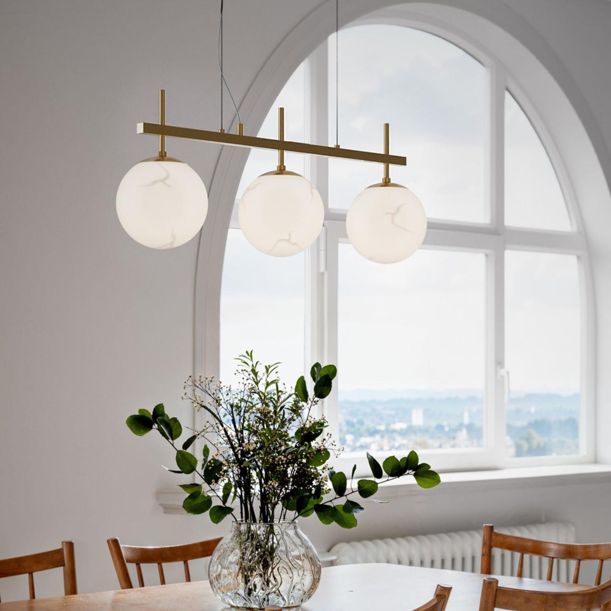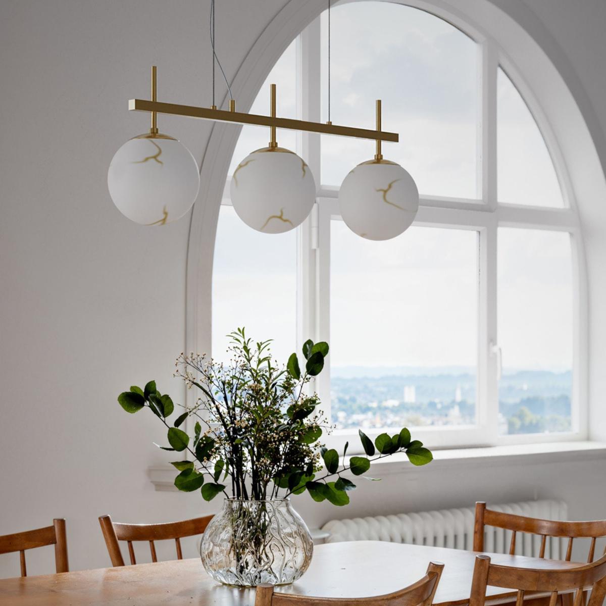 Det marmorerte glasset sprer et mykt og behagelig lys, som passer perfekt over et spisebord.Lampene er lettplassert og passer perfekt i forskjellige miljøer, fra moderne interiører til mer klassiske hjem.