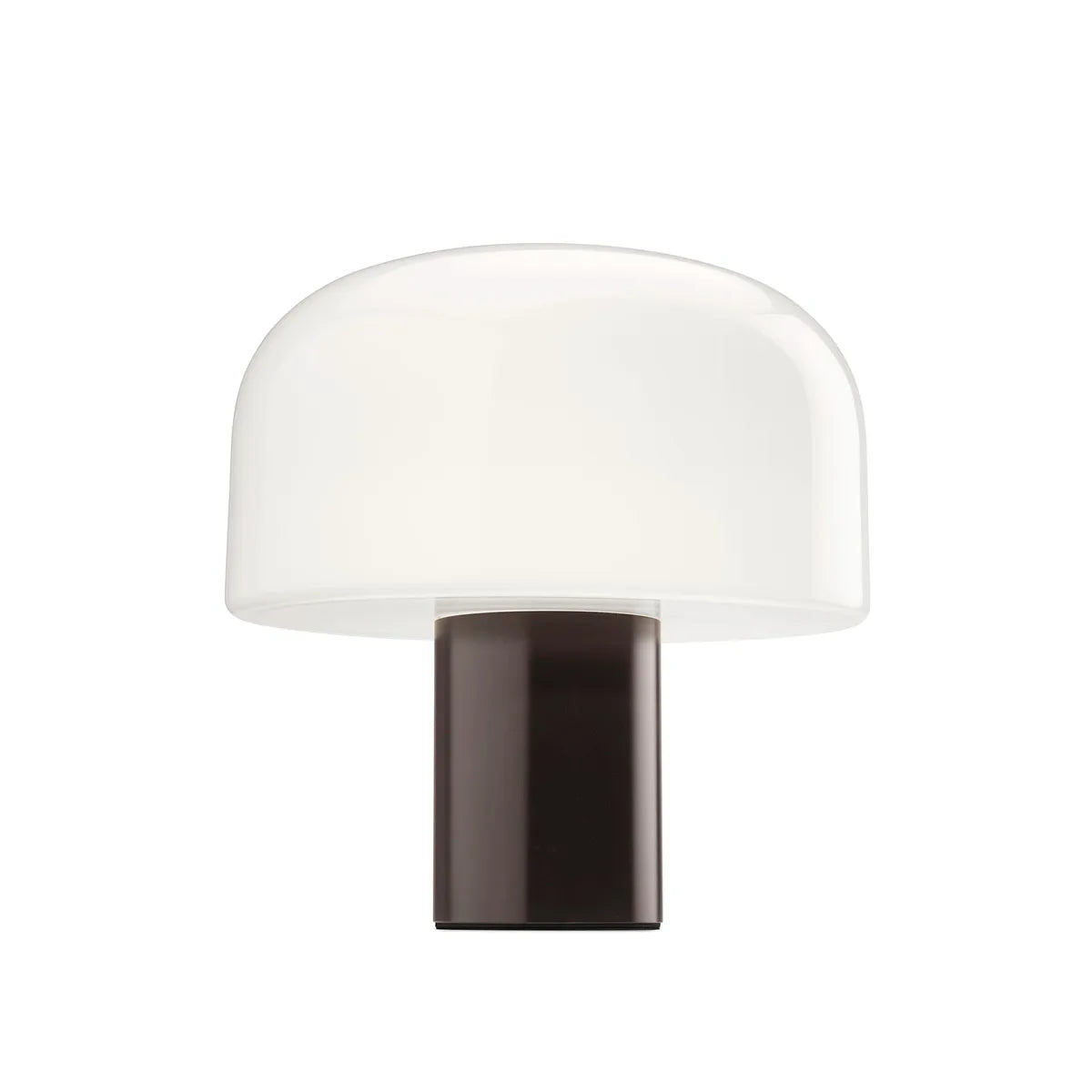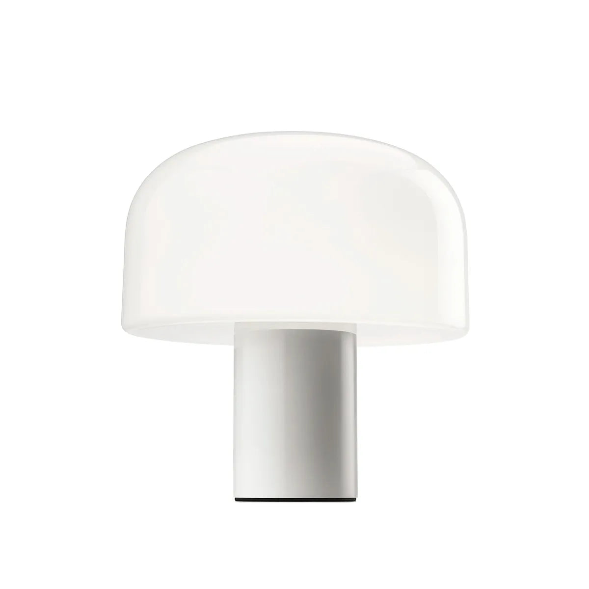 Denne versjonen av Bellhop Glass-lampen, med en diameter på 33 cm, hviler på en sylindrisk base i aluminium med en diameter på 12 cm, og er tilgjengelig i fargene Bright Aluminium, Cioko og White. Materialene utmerker seg ikke bare for sin estetiske verdi, men også for sin resirkulerbarhet ved slutten av livssyklusen – noe som understreker Flos sitt engasjement for bærekraft.