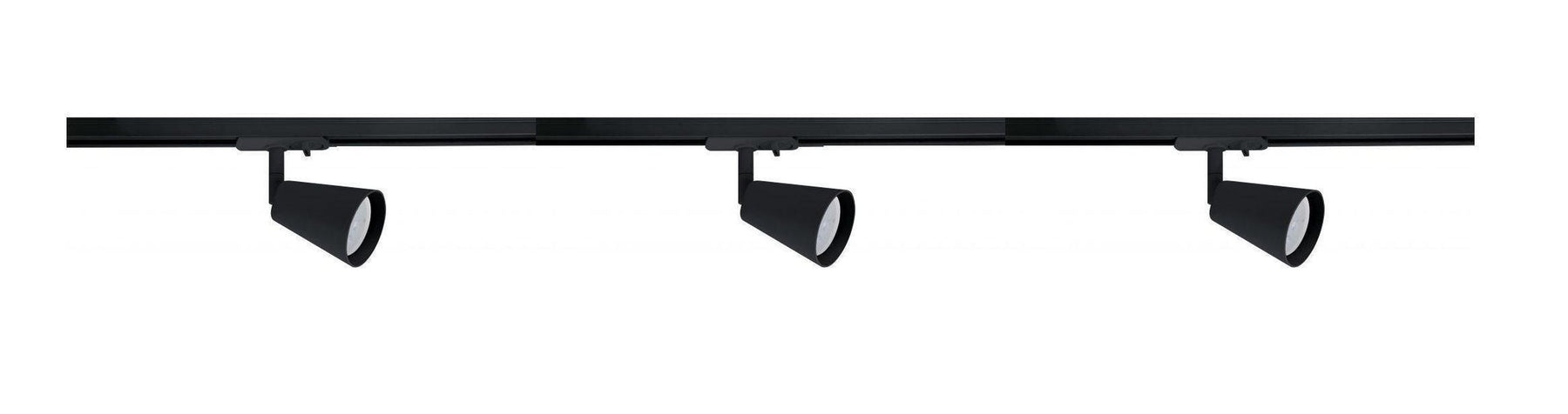 Komplett 1 meter spotskinne med 3 spotter. Lyspærer kjøpes separat med GU10 sokkel.