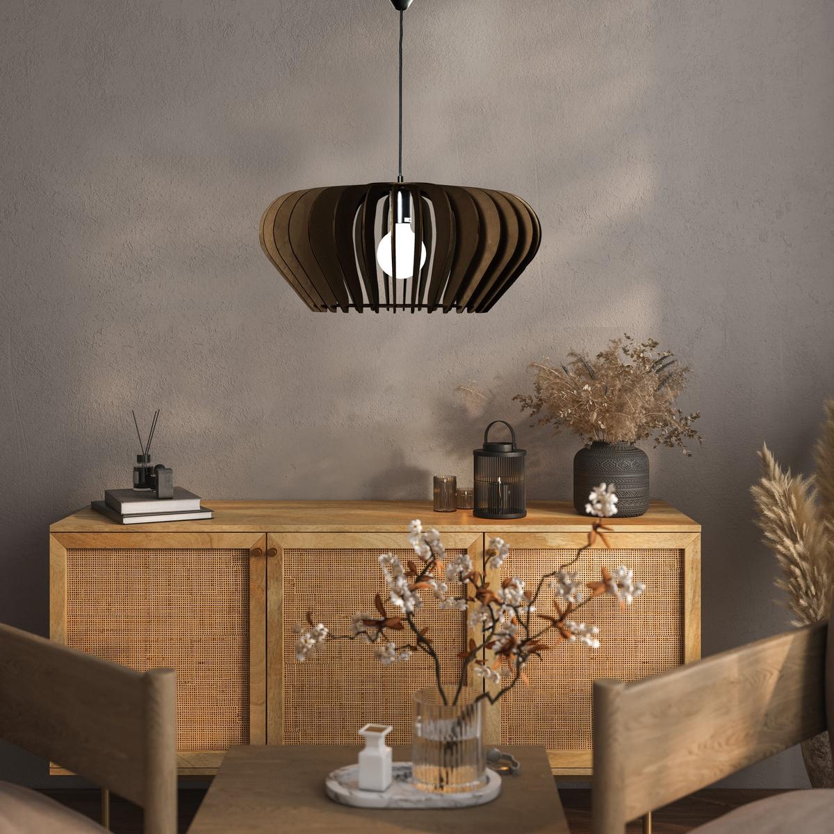 Den elegante taklampen Calyps består av plywoodlameller i myk rundet form som skaper en vakker lys- og skyggeeffekt. Den passer like godt over kjøkkenbordet som i stuen hvor du ønsker god allmennbelysning.