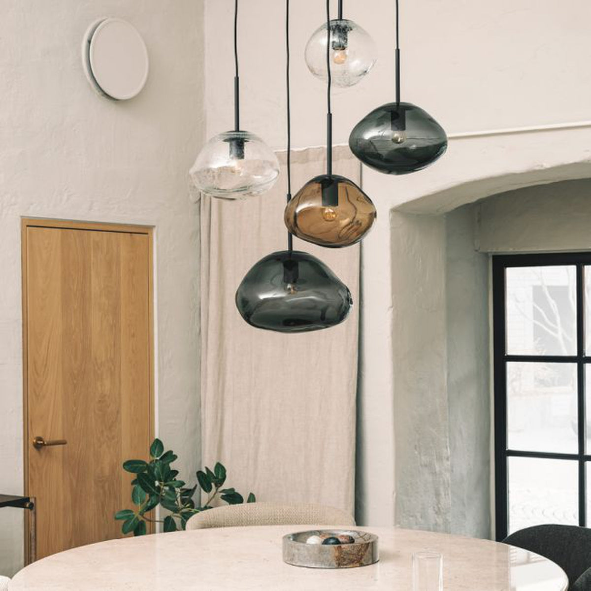 Som klare regndråper på et vindu, og spillet i istapper om våren. Alle lampene er munnblåst og den organiske formen skapes når glassmassen er varm, dette gjør at hver eneste kuppel blir unik.