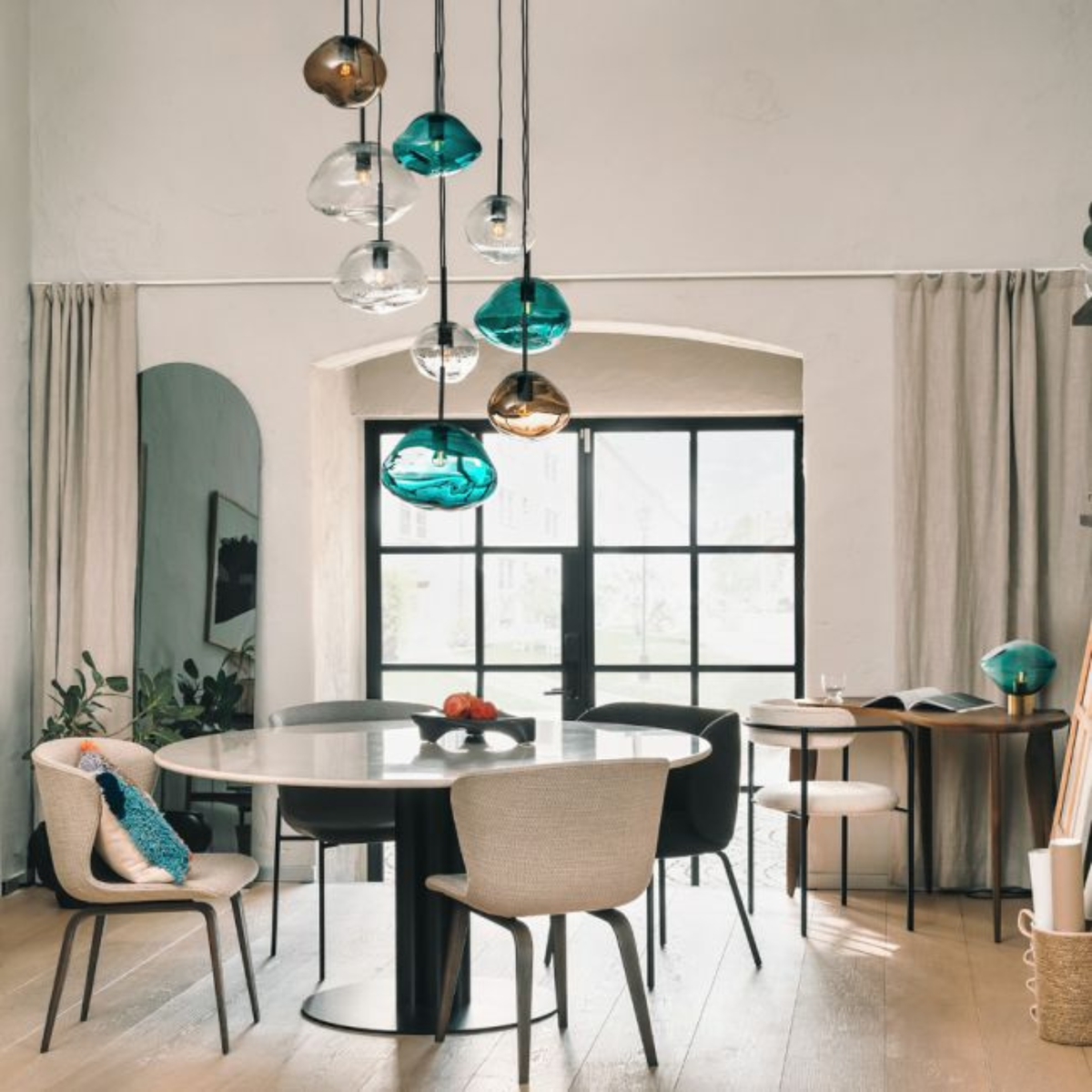Utforsk mulighetene med Crystal Stone-kolleksjonen, en serie av unike og håndblåste glasspendellamper inspirert av naturens mangfoldige former og farger. Disse lampene skaper magiske assosiasjoner til iskrystaller, eroderte klipper og myke steinformasjoner.