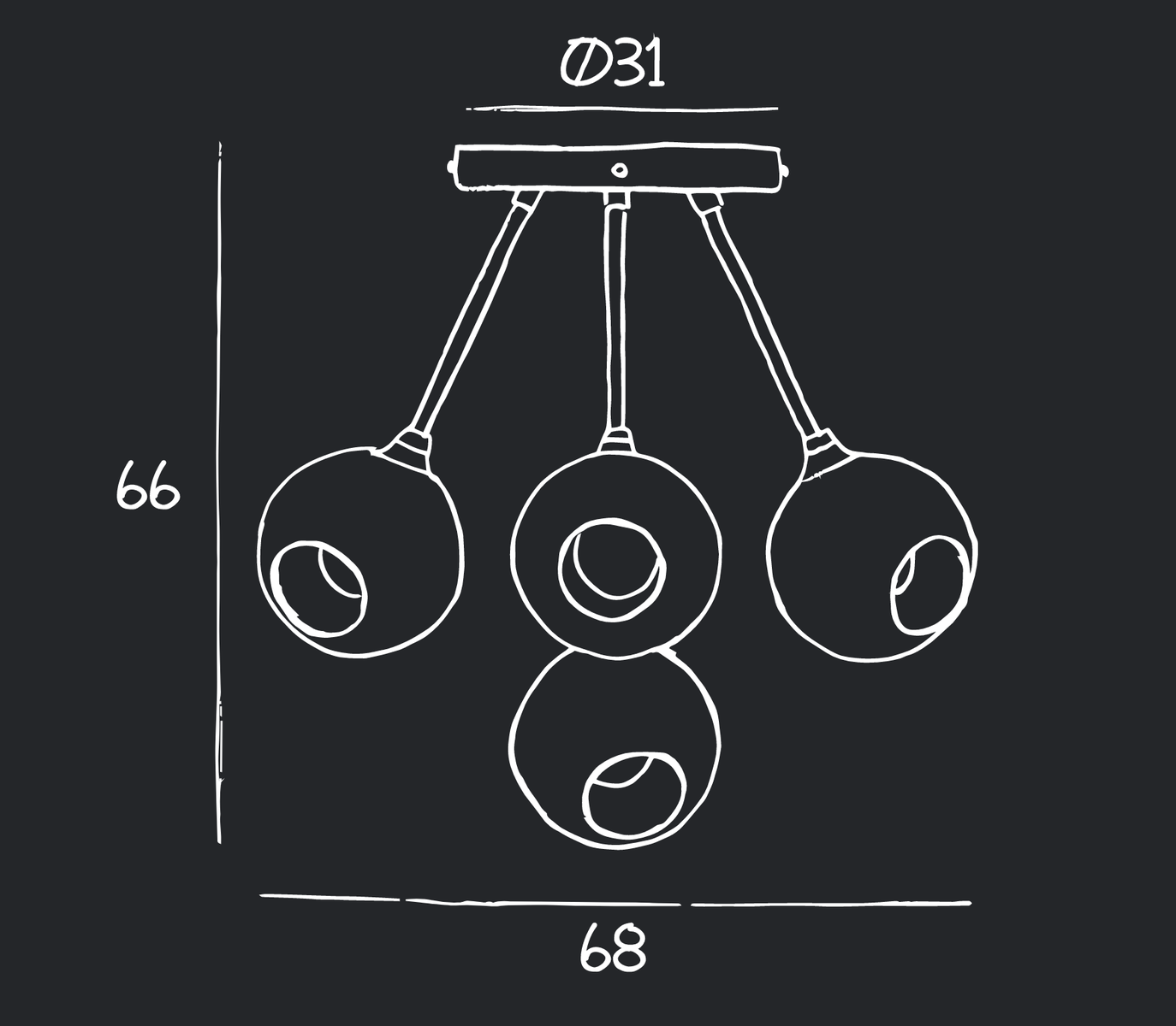 Ballroom Molecule lysekronen fra Design By Us er deres tolkning av en moderne og funksjonell lysekrone. Dette er kronjuvelen til Ballroom-serien, i form av en femarmet lysekrone som skiller seg ut hvor som helst. Ballroom Molecule taklampe er en dekorativ lampe med munnblåst- og håndmalt glass. Den fine kanten i glasset er håndmalt. Ballroom har et elegant uttrykk og skaper en behagelig belysning. Taklampen er perfekt å ha hengende i gangen, stuen, soverommet eller i ett rom hvor du ønsker vakker belysning. Vær oppmerksom på at lampen selges uten lyspærer. Fem lyspærer kreves for denne lampen.