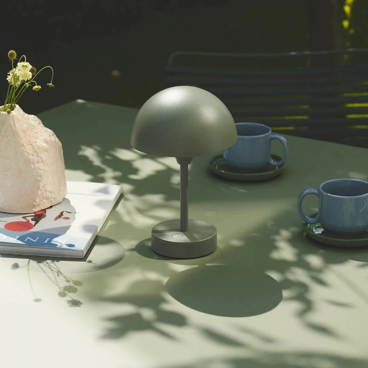 Med sine referanser til minimalistisk og tidløs skandinavisk design passer lampen Ellen vakkert inn i de fleste omgivelser. Denne bærbare «miniversjonen» kan brukes både innendørs og utendørs, og den kan dimmes i tre trinn for å sette den perfekte stemningen. Batteriet lades enkelt ved å plassere lampen på den medfølgende ladestasjonen.