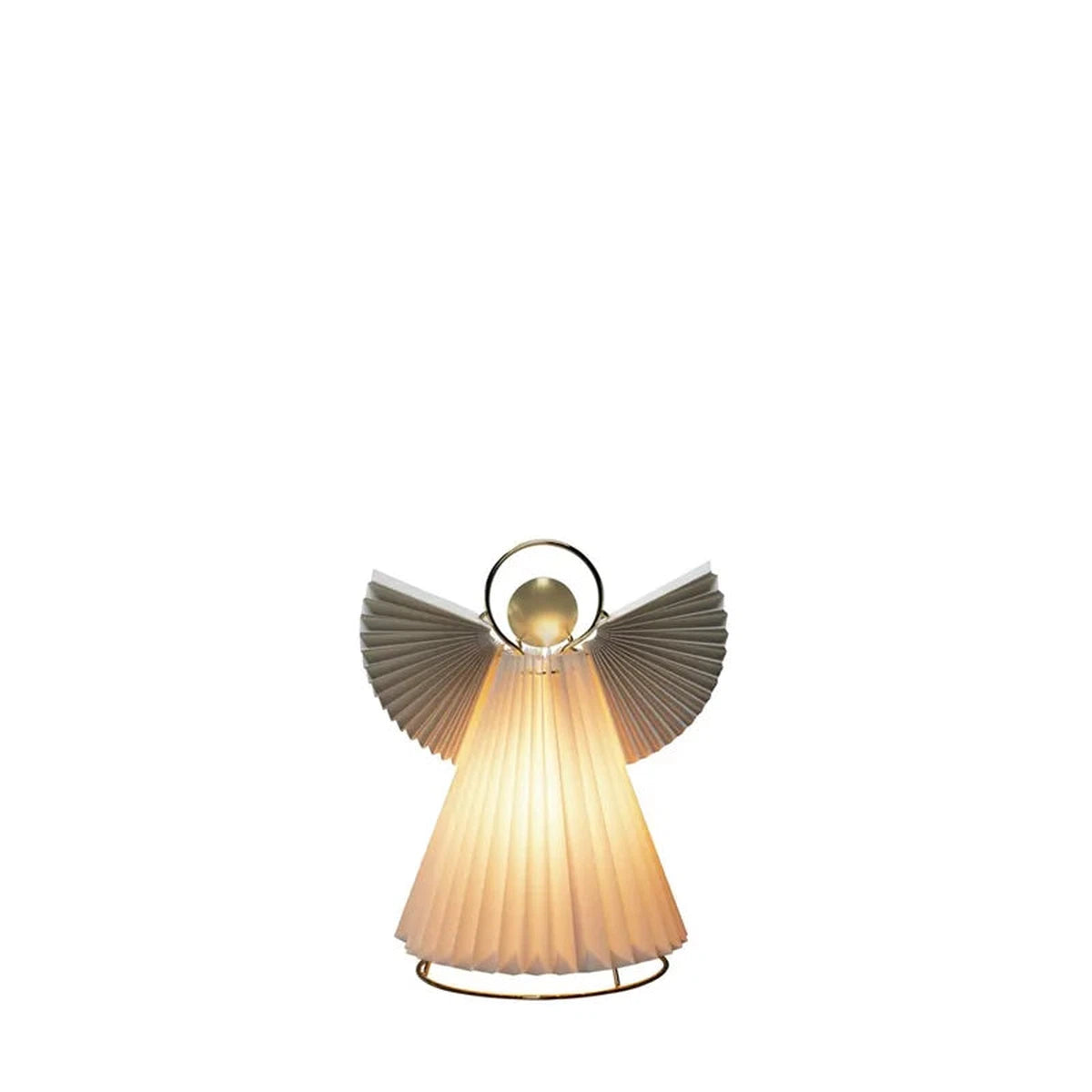 Engel i papp og messing. 26 cm høy. E14 lampeholder og ledning med bryter.