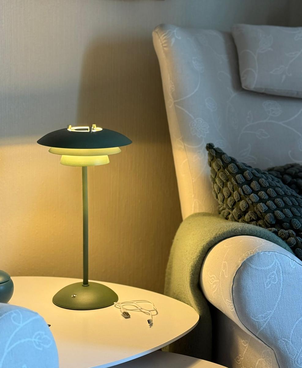 Epsilon Recharge i metall, med klassisk design og moderne uttrykk, kombinerer funksjon og stil. En oppladbar bordlampe med dimbar LED-lyskilde og lang batteritid på ca. 10–12 timer før den må lades igjen. Et stilig og fleksibelt valg som gjør det mulig å ta med lyset dit du ønsker, uten å tenke på stikkontakter og ledninger. Perfekt som stemningsbelysning i et vindu, på en hylle eller et sidebord. Utskiftbare detaljer i krom og matt messing medfølger, samt USB-C-kabel (lader ikke inkludert). Kombiner gjerne Epsilon Recharge med andre lamper i Epsilon-familien.