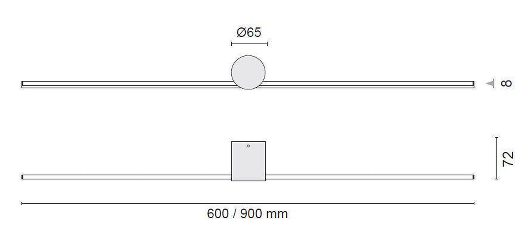 Elegant og minimalistisk lampe, som kan monteres i tak eller på vegg. Lampen gir et indirekte lys som vender nedover, og kan monteres vannrett og loddrett for å skape ulike designeffekter.