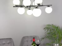 Essa en moderne taklampeserie. Modellen finnes som 5 eller 8 lys og i farget kuppel i klar, røykfarget, amberfarget eller opal glass.