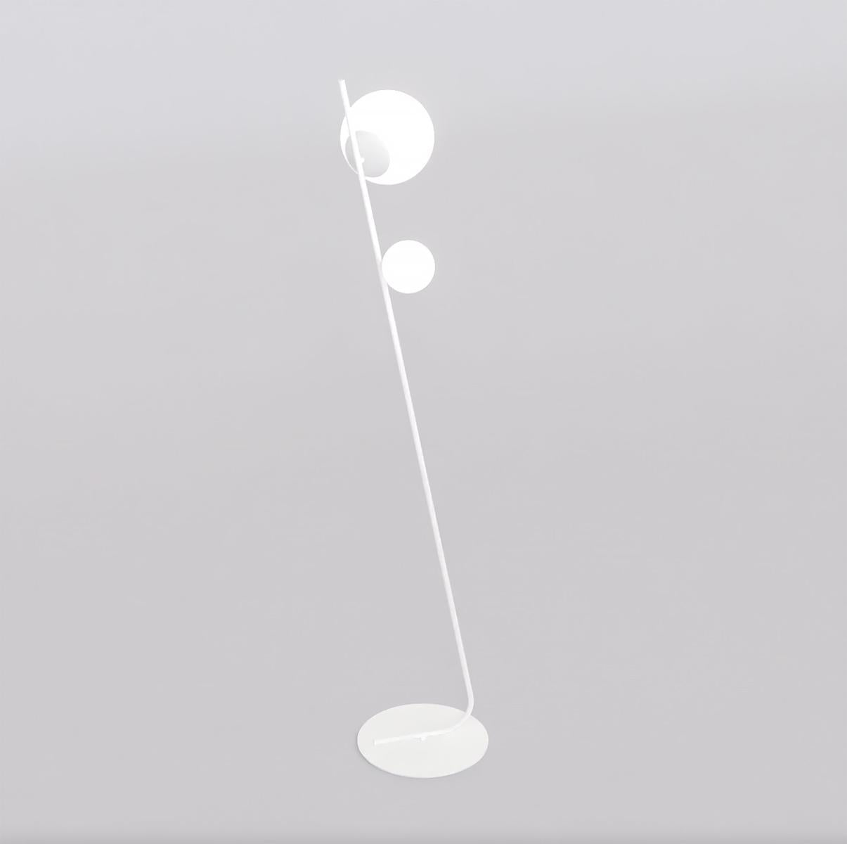 Denne minimalistiske gulvlampen med en dynamisk, diagonal linje er en kombinasjon av enkelhet og eleganse. Den geometriske formen og de subtile detaljene gjør den til et unikt aksent i ethvert interiør, og gir den en moderne karakter. Den passer perfekt inn i en stue, et soverom eller et kontor, og kombinerer funksjonell belysning med et designerpreg.
