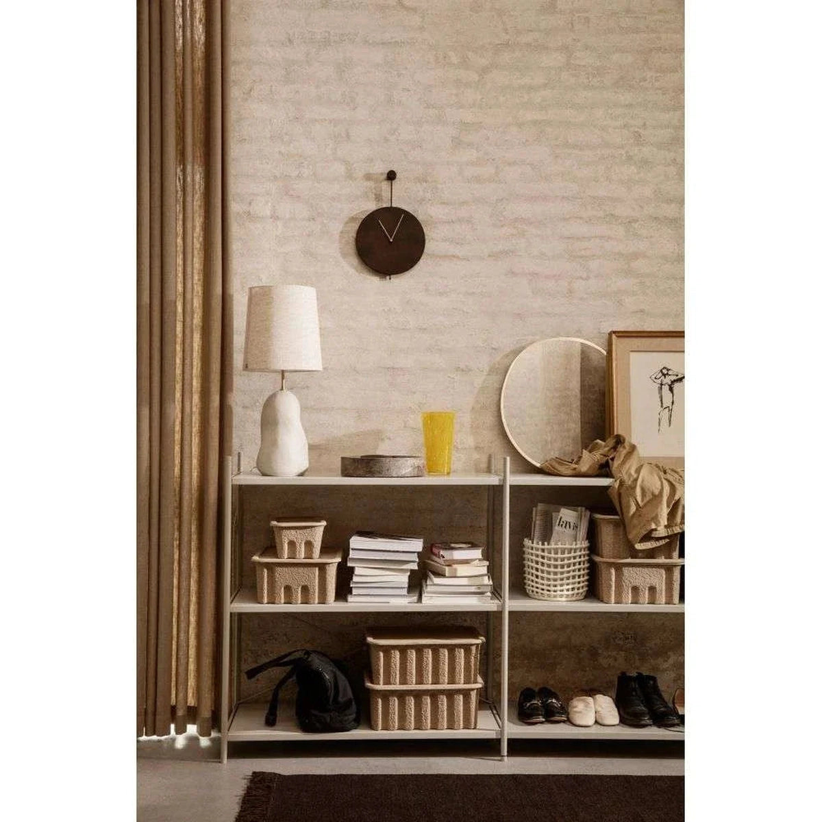 Hebe Bordlampe Medium i mørk grå/Natur er en dekorativ bordlampe fra det danske merket Ferm Living. Lampefoten er formet for hånd i keramikk, som er kombinert med den klassiske lampeskjermen i tekstil. Lampens organiske form gir hjemmet et kunstnerisk preg. Lampeskjermen har lokk så du ikke blir blendet av lyspæren.