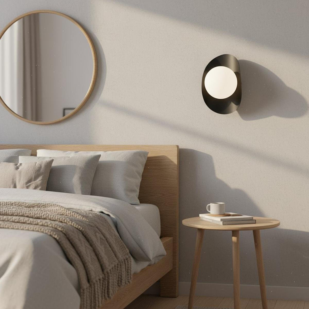 Legg til et kunstnerisk preg på interiøret ditt med denne designervegglampen. Dens glatte og minimalistiske design vil gli sømløst inn i moderne innredning og skape et subtilt, atmosfærisk lys på veggen. Denne allsidige vegglampen er perfekt for stue, soverom, gang eller kontor. Denne vegglampen kombinerer original stil og funksjonalitet.