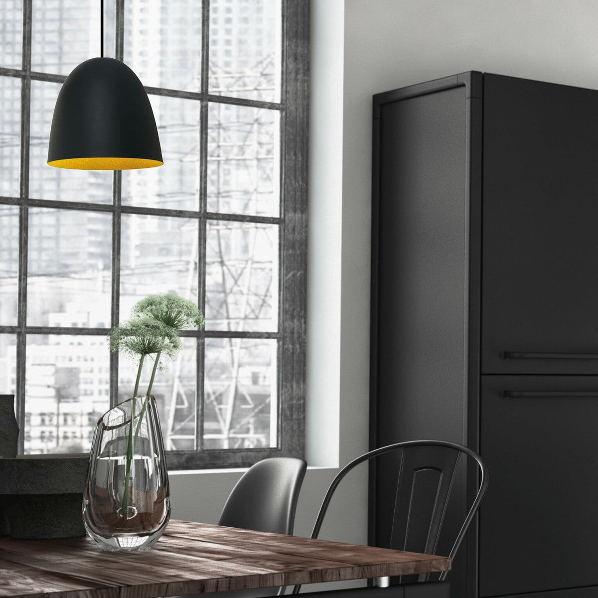 Innsiden er lakkert i en forgylt gullfarge, som lyses elegant opp og skaper et blikkfang i rommet. Ledningen er på hele 3m, som enkelt kan tilpasses etter eget ønske.