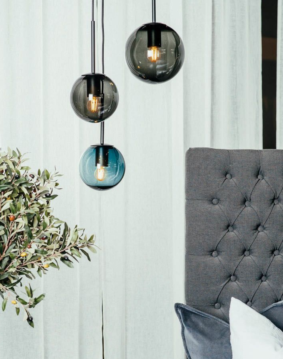 Lampen kommer i fem farger: Hvit, Grå, Kakao, Oliven og Blå.