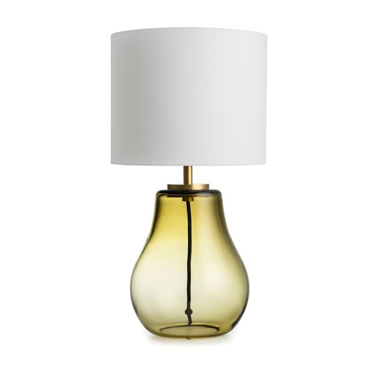 Bordlampen har en organisk base i munnblåst glass og tekstilskjerm i høy kvalitet. Lampene er tilgjengelig i ulike glass- og skjermfarger, slik at du kan sette sammen den perfekte lampen til ditt hjem.