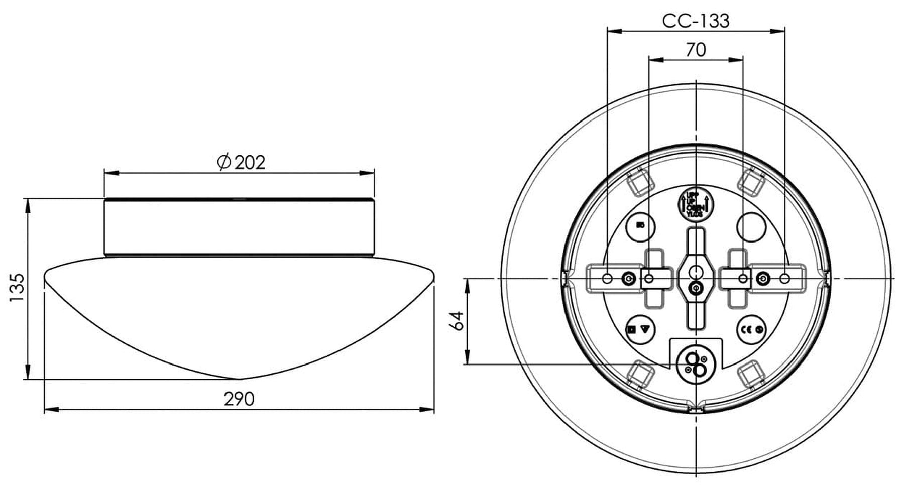 - Dimbar: Ja, dimbar ved bruk av dimbar lyspære og ekstern dimmer