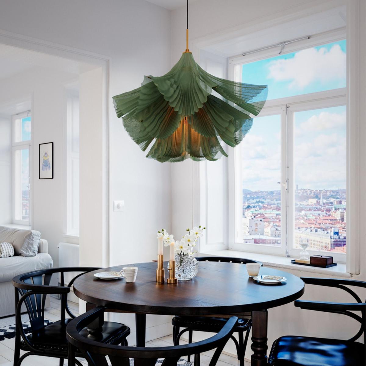 Taklampe Juliette – feminin eleganse med unikt formspråk,Taklampe Juliette er en vakker og feminin taklampe som virkelig skiller seg ut med sitt unike og myke formspråk. Lampen er designet med tre lag plissett tyll som gir den en lett, luftig og drømmende følelse. Tyllens skjøre materiale skaper et fint og behagelig lys som sprer en varm og innbydende atmosfære i rommet.