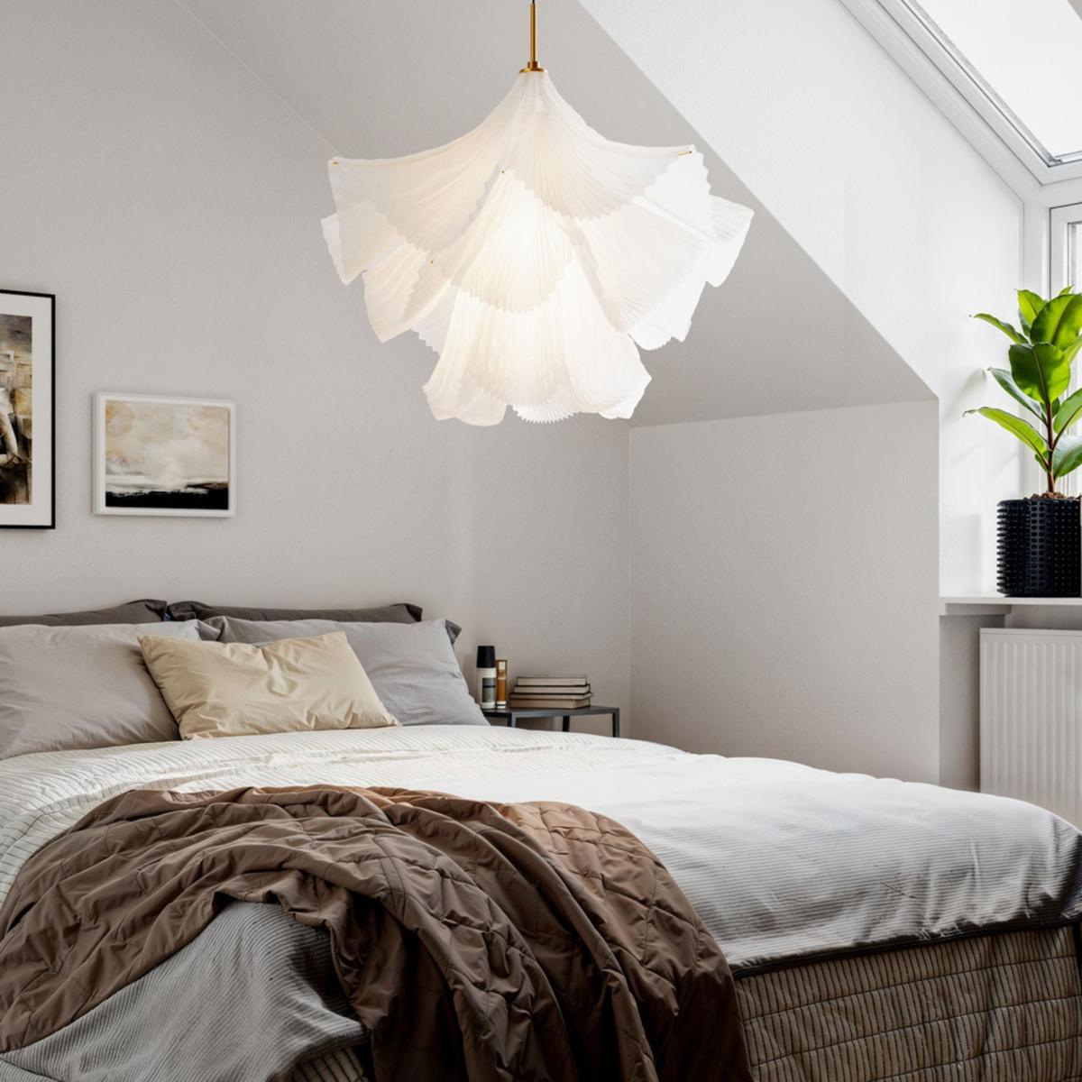 Denne taklampen passer perfekt på soverommet, hvor den bidrar til en rolig og fredfull stemning, men fungerer også utmerket over spisebordet, hvor den skaper en innbydende og stemningsfull belysning.