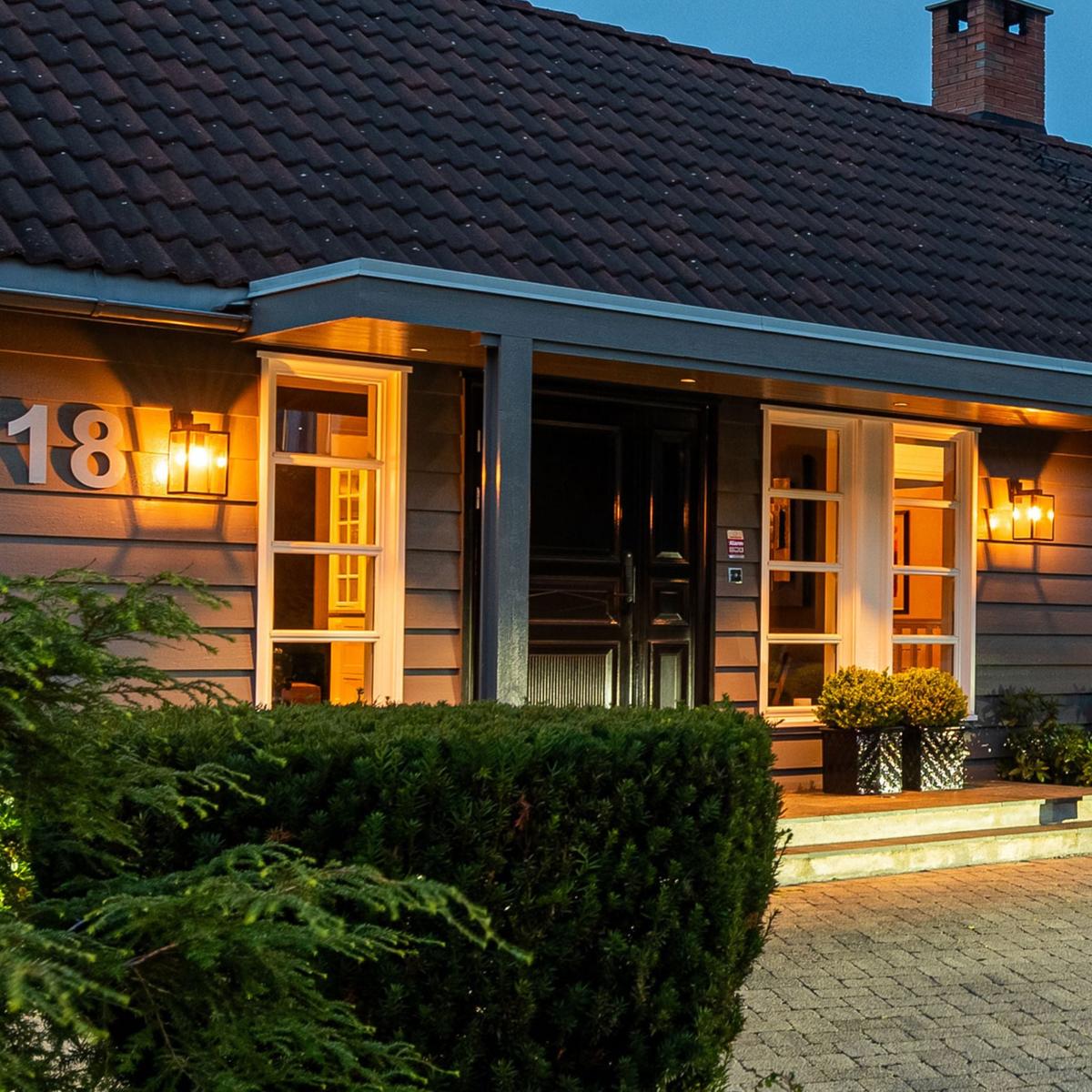 Lofoten er en stilren lampe i sortfarget stål som leveres med klart glass og som passer godt til det tradisjonelle og moderne huset.
