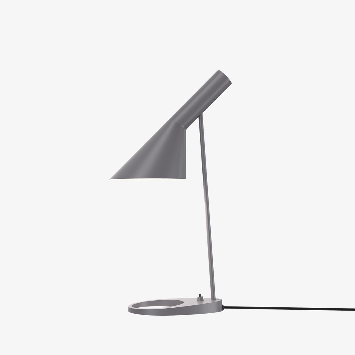 AJ bordlampe fra Louis Poulsen har et ikonisk design med sine karakteristiske former. Lampen har et direkte , retningsbestemt lys. Vinkelen på skjermen kan justeres for å optimalisere lysfordelingen. Skjermen er malt hvit på innsiden for å gi et mykt og komfortabelt lys. Lampen har bryter på lampefoten. Et must for design-interesserte.