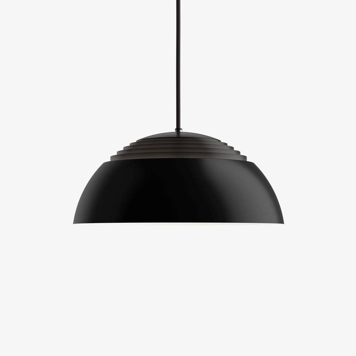 Pendelen AJ kommer i tre størrelser og kjennetegnes av rillene på toppen som gjør at et mildt lys lyser oppover. I den nye, energibesparende LED-versjonen leveres alle tre størrelsene med en diffuser, som gir et jevnere og 100 % blendefritt lys.