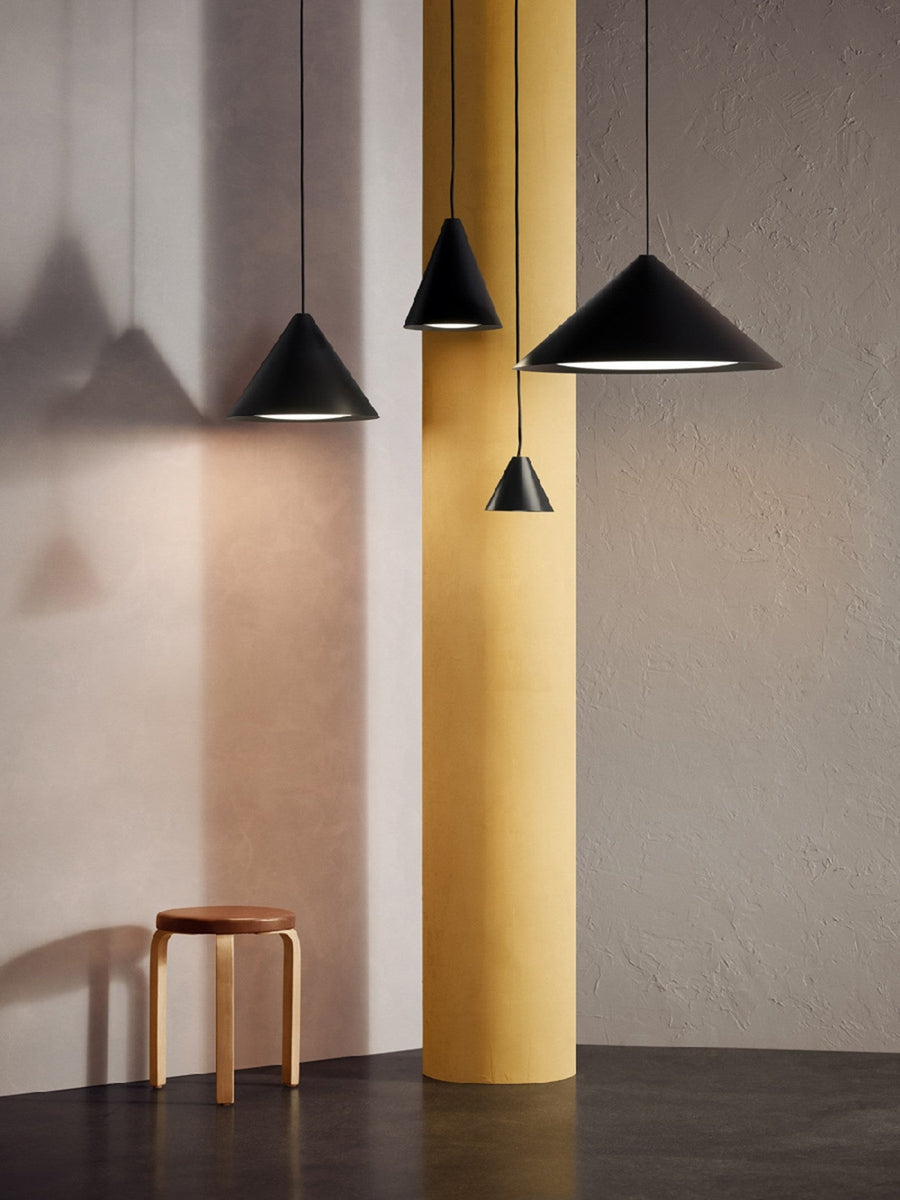 Keglen pendel sine karakteristiske koniske skjermer har en innebygd buet opalinnsats. Dette sikrer et attraktivt og blendefritt nedadrettet lys. Hver versjon av skjermen gir sin egen lysspredning, mens den hvite innsiden sikrer at lyset reflekteres feilfritt. Et svakt lys avgis også oppover gjennom en ensartet, diskré åpning i toppen av skjermen, noe som gir en perfekt stemning.