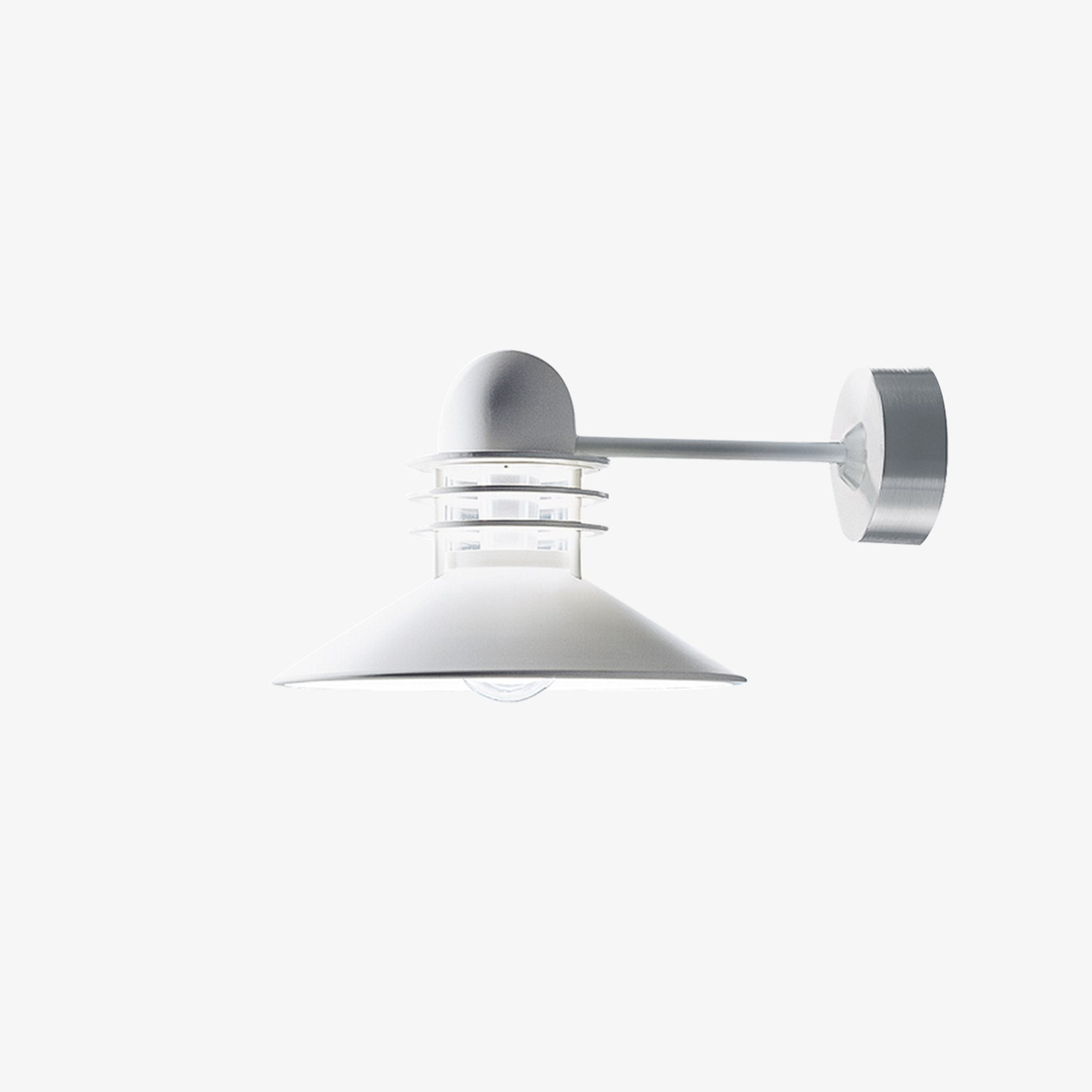 - Materiale: Skjermer: Trukket aluminium eller trukket kobber. Utførelse: Klart glass. Topp: Trukket aluminium eller trukket kobber. Veggboks: Presstøpt aluminium. Veggboksdeksel: Trukket aluminium eller trukket kobber. Arm: Kobberbelagt, rød messing eller stål.