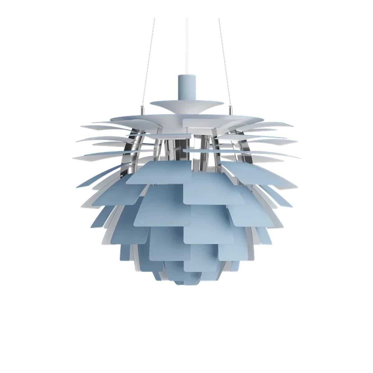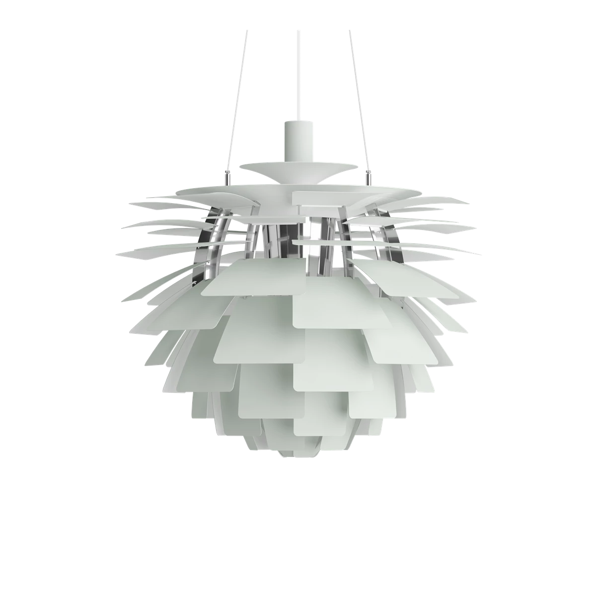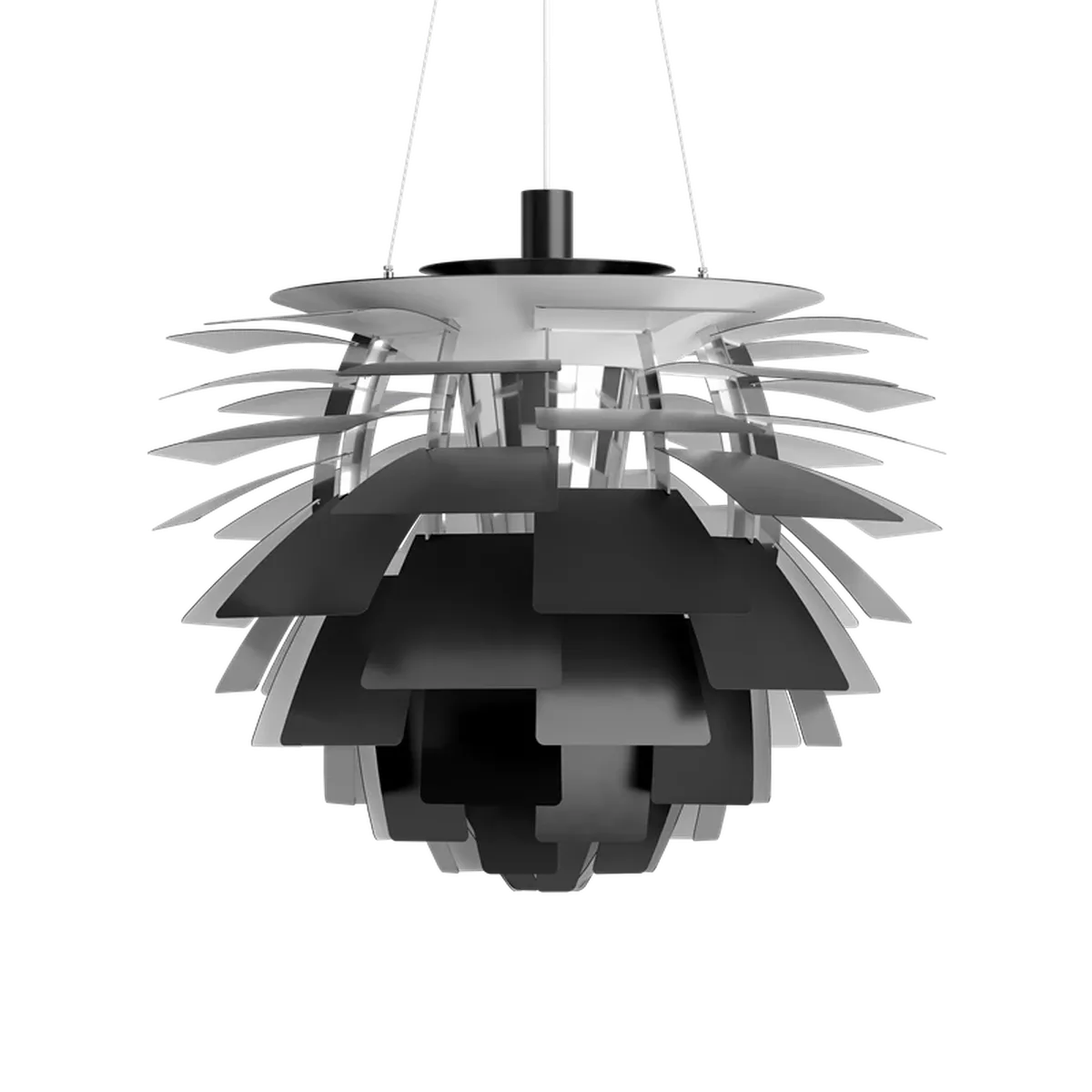 I 1958 designet Poul Henningsen PH Artichoke for Langelinie Pavilion, en modernistisk restaurant i København. Der fortsetter PH Artichoke å fortrylle gjestene den dag i dag og pendelen anses som et internasjonalt designikon. Den markante formen og designen på pendelen sikrer et helt blendefritt lys, uansett hvilken vinkel den ses fra. Dette skyldes de 72 nøye plasserte bladene, som også har inspirert navnet til pendelen. PH Artichoke blir fortsatt delvis satt sammen for hånd for å sikre høy kvalitet. Og ja, det er sant at den tar opp mye plass. Kvaliteten på lyset og elegansen er imidlertid uten sidestykke. Den berømte armaturen er fortsatt tilgjengelig i sin opprinnelige kobberutførelse. Over tid har versjoner i børstet og polert stål, messing og hvitt metall blitt lagt til, og disse fortsetter å understreke pendelens allsidighet og tidløse silhuett. PH Artichoke i svart innføres i 2020. Med en perfekt matt svart finish skaper denne versjonen et dristig utseende for et mer særskilt preg uten at det går på bekostning av verken design eller lyskvalitet.