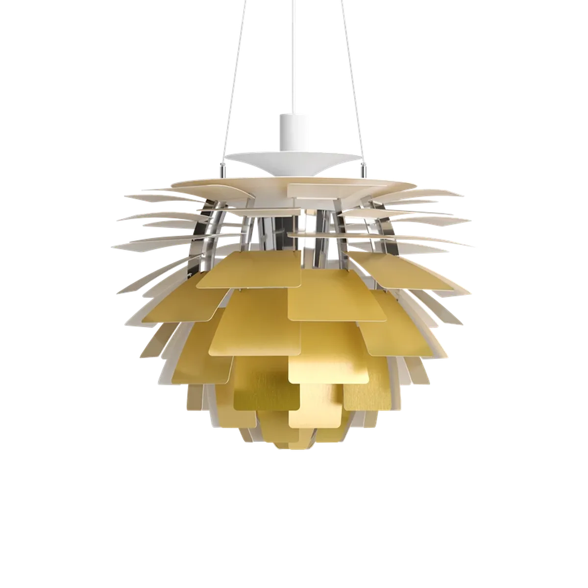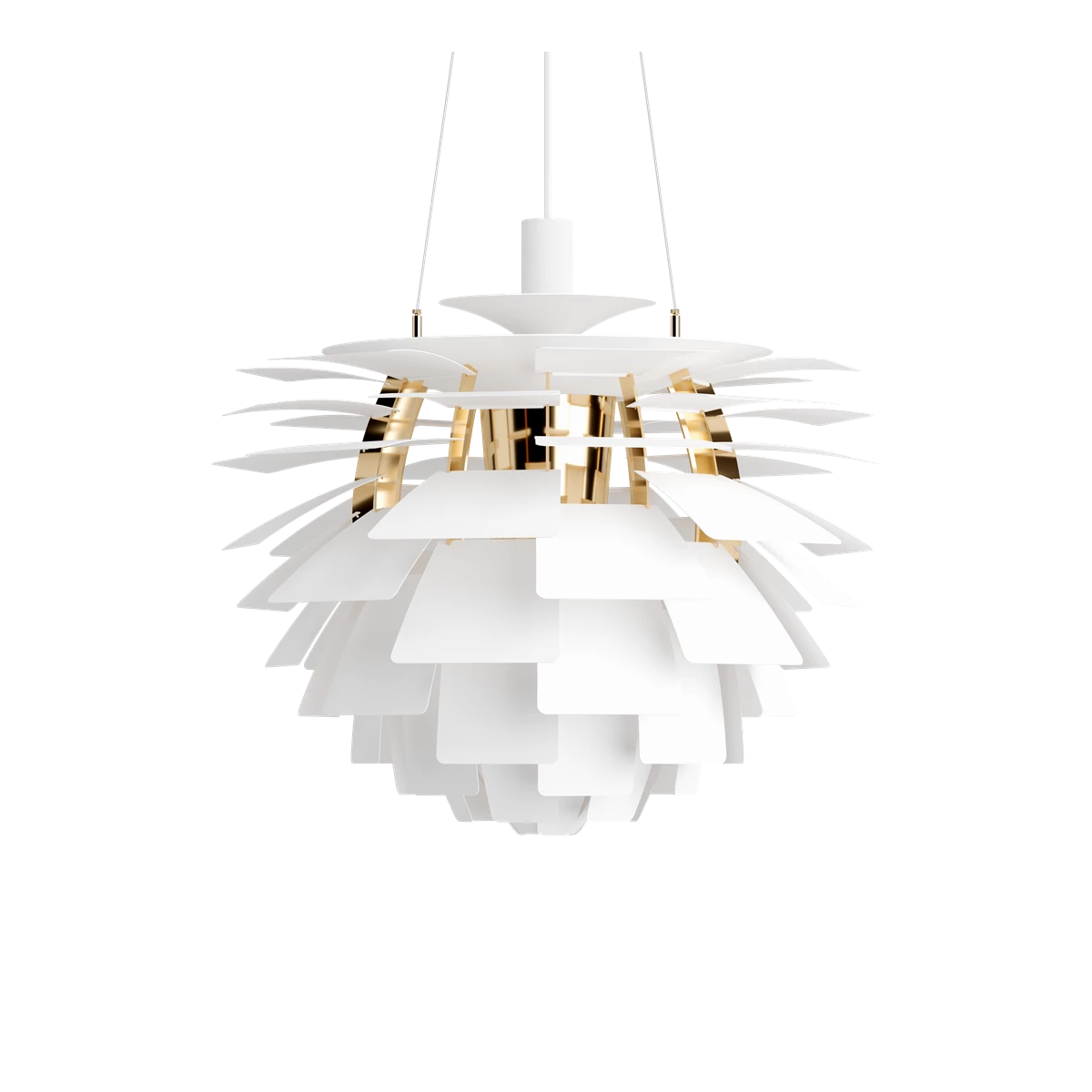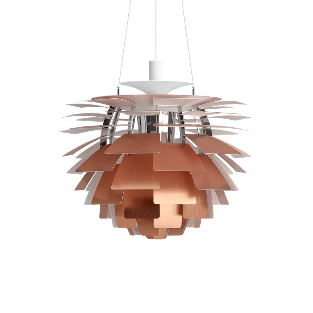 I 1958 designet Poul Henningsen PH Artichoke for Langelinie Pavilion, en modernistisk restaurant i København. Der fortsetter PH Artichoke å fortrylle gjestene den dag i dag og pendelen anses som et internasjonalt designikon. Den markante formen og designen på pendelen sikrer et helt blendefritt lys, uansett hvilken vinkel den ses fra. Dette skyldes de 72 nøye plasserte bladene, som også har inspirert navnet til pendelen. PH Artichoke blir fortsatt delvis satt sammen for hånd for å sikre høy kvalitet. Og ja, det er sant at den tar opp mye plass. Kvaliteten på lyset og elegansen er imidlertid uten sidestykke. Den berømte armaturen er fortsatt tilgjengelig i sin opprinnelige kobberutførelse. Over tid har versjoner i børstet og polert stål, messing og hvitt metall blitt lagt til, og disse fortsetter å understreke pendelens allsidighet og tidløse silhuett. PH Artichoke i svart innføres i 2020. Med en perfekt matt svart finish skaper denne versjonen et dristig utseende for et mer særskilt preg uten at det går på bekostning av verken design eller lyskvalitet.