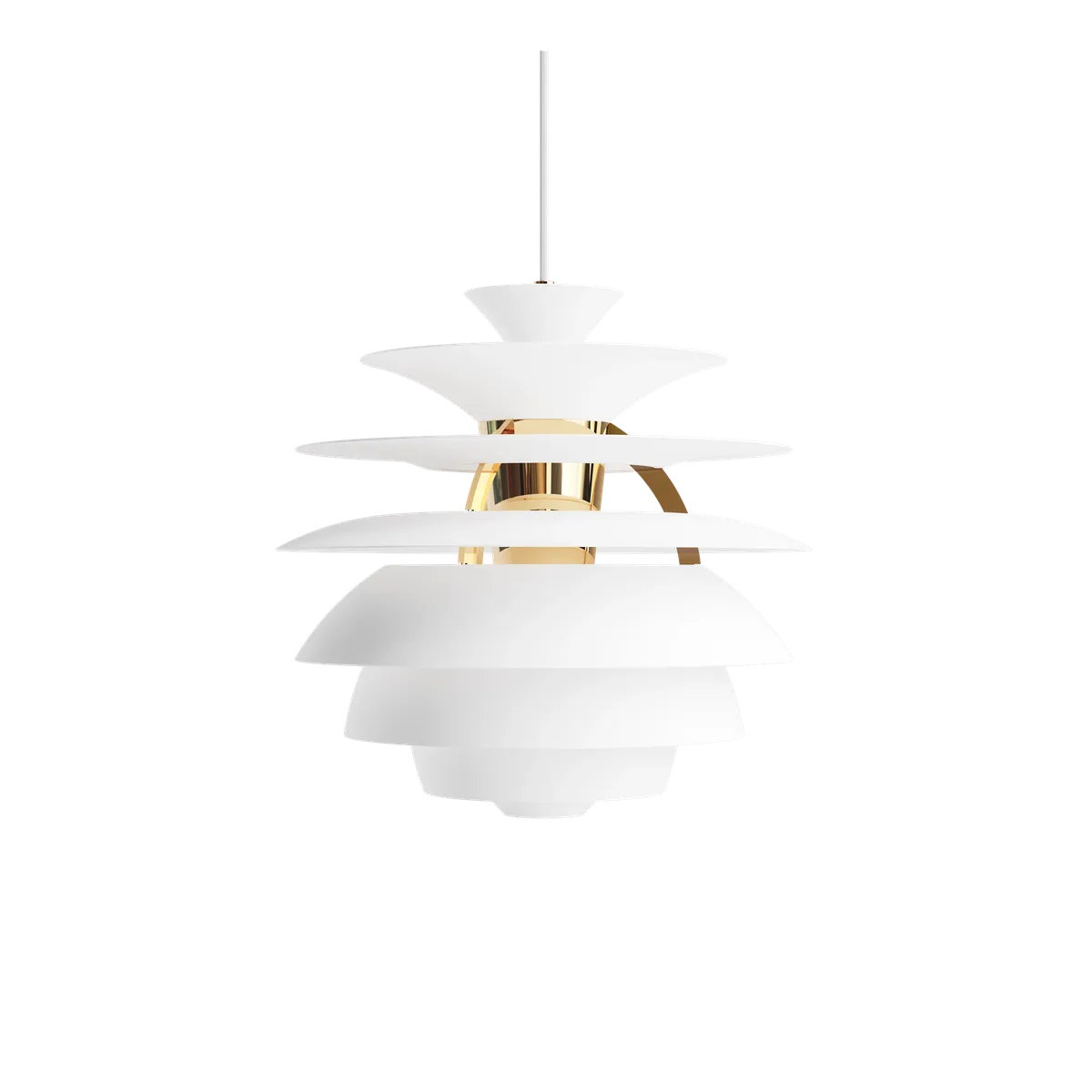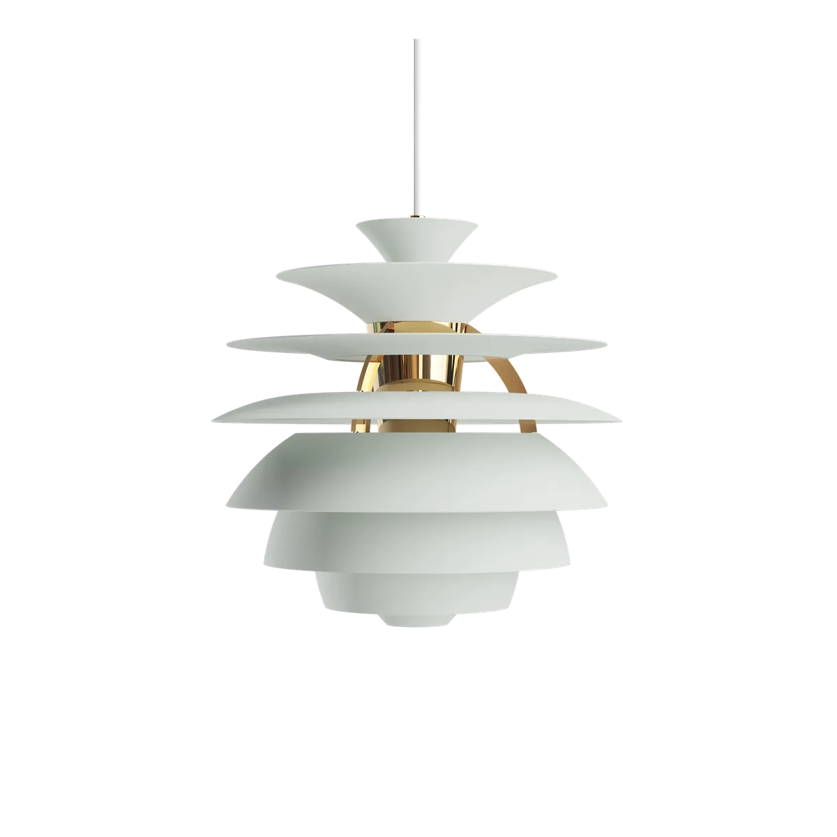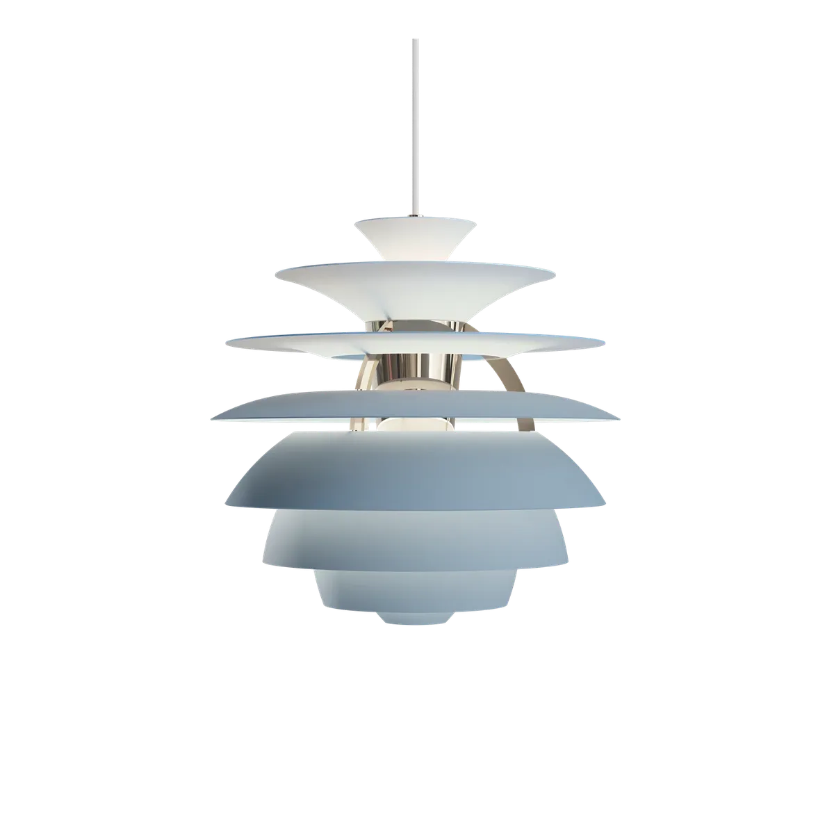 PH Snowball fra Louis Poulsen sender ut et komfortabelt og blendfritt dempet lys. Matte, malte undersider og blanke overflater gir en attraktiv refleksjon av det dempede lyset og skaper en jevn belysning rundt armaturen. Når lyset er slått på er den øverste delen opplyst mens den nederste delen forblir mørk.