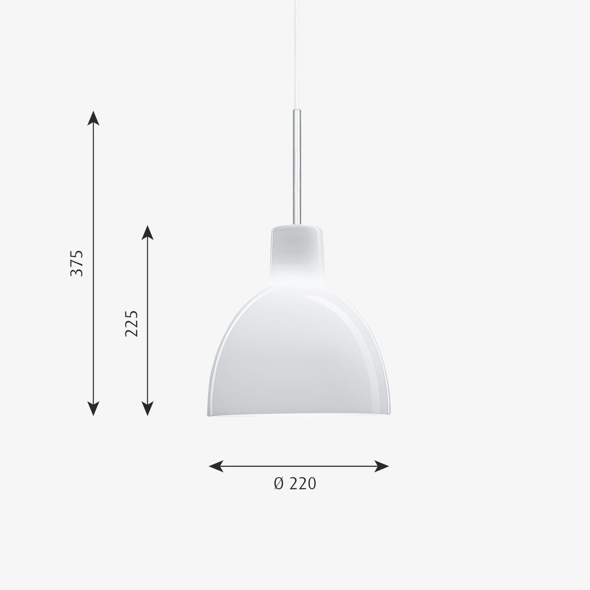 Toldbod pendelen i glass gir et blendfritt, primært nedadrettet lys. Det opale glasset gir en behagelig og jevn belysning av området rundt armaturen.