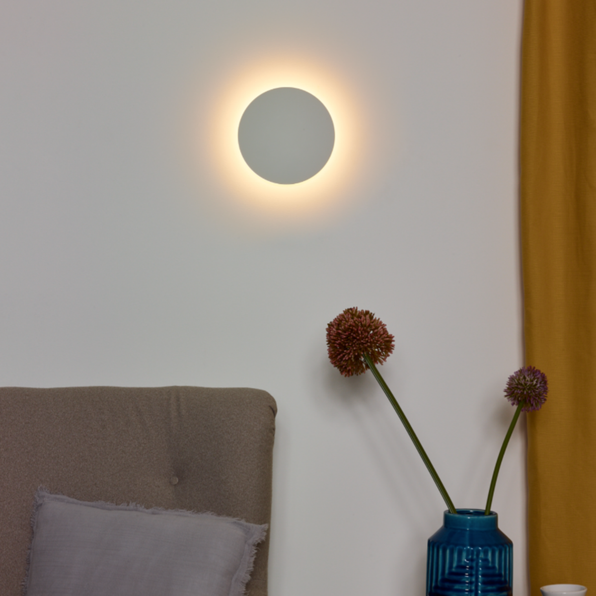 Et koselig varmt lys i taket eller på veggen. Belysningen er skjult bak en elegant metallskive. Når lyset er slått på, endres platen til en diffus glød som skaper varm belysning. Vegglampens aluminiumsokkel kan enkelt festes til veggen. Eklyps passer perfekt i moderne interiør og i stort sett alle rom.
