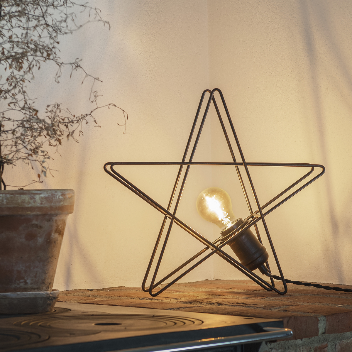 Adventstjerne i metall med åpen lyskilde. Tvinnet ledning
