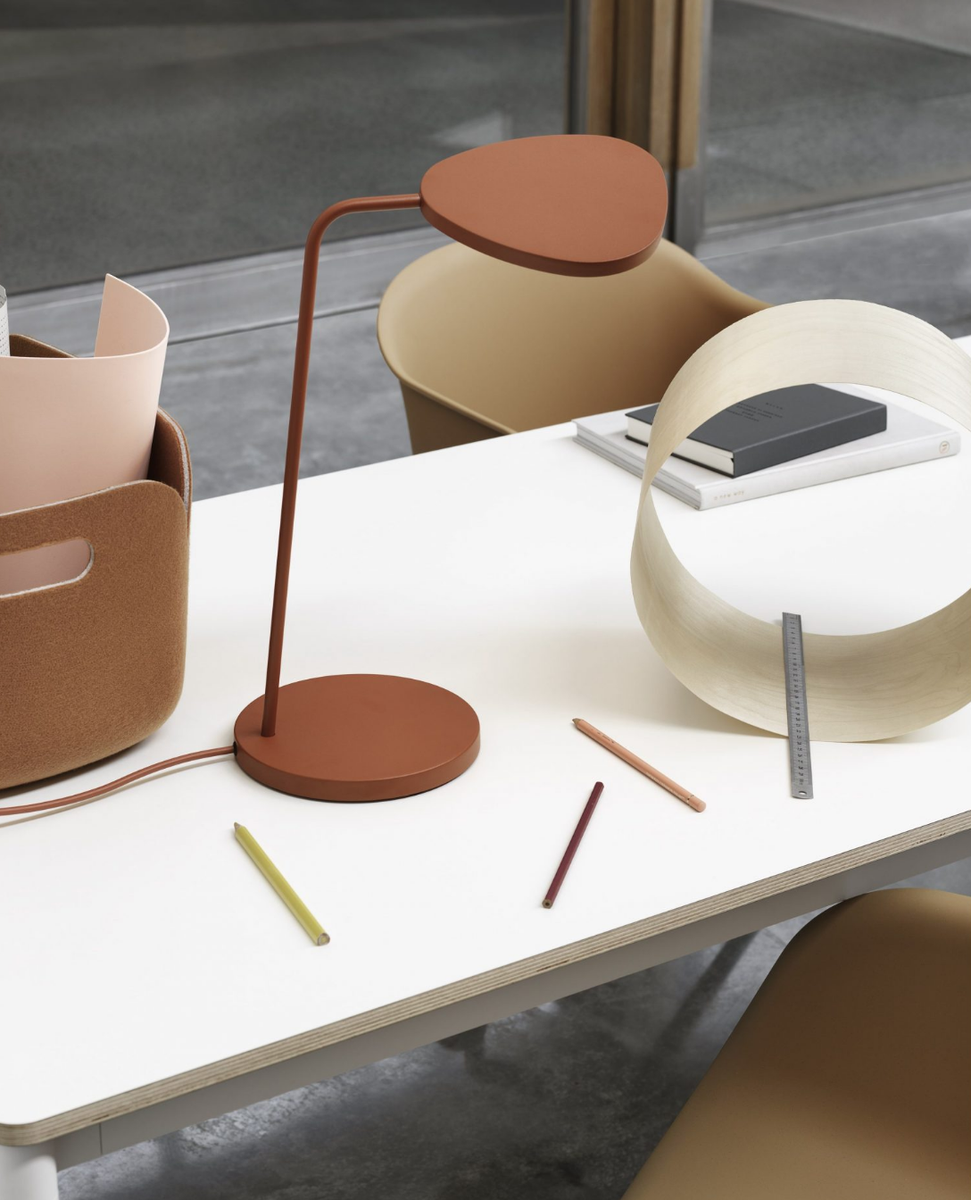 Leaf Bordlampe fra Muuto er en moderne og elegant designet lampe som er like fin til det private hjem som til kontoret. En meget allsidig lampe som er flott å bruke på skrivebordet, på nattbordet eller i en vinduskarm. Lampen har energisparende LED lyskilde og er dimbar. Lampen er fremstilt i aluminium og messing og kommer i fargene; grå, sort, kobber, hvit og mørke grønn.
