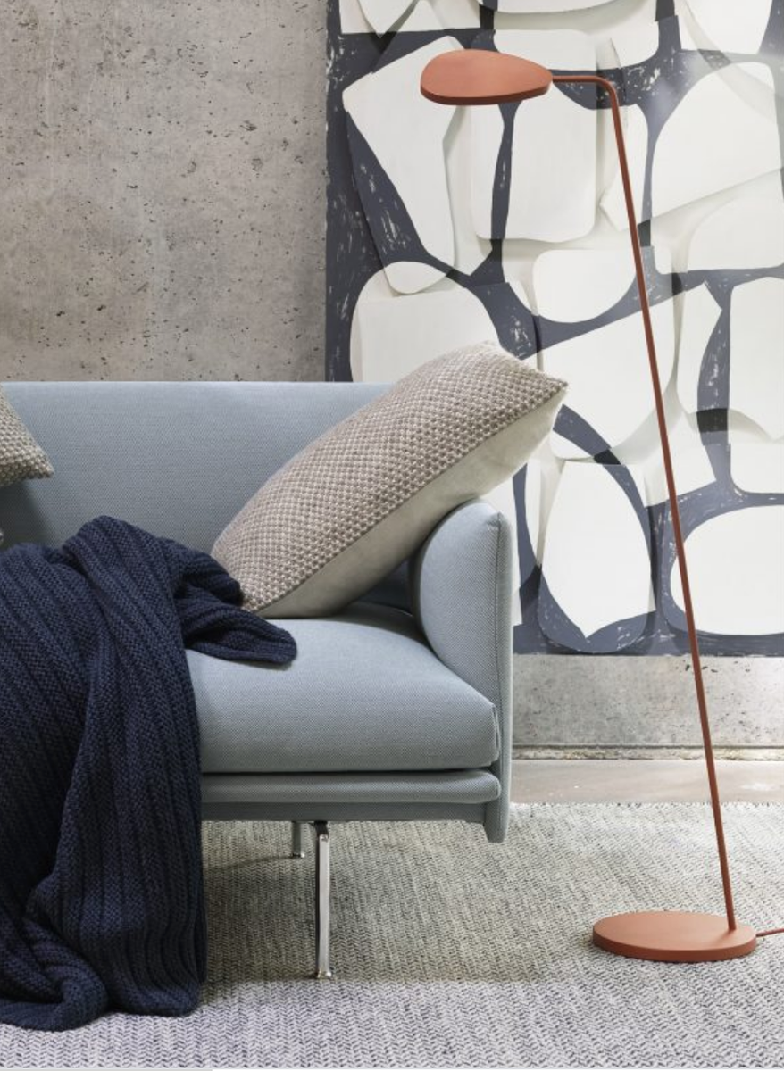 Leaf Gulvlampe fra Muuto er en moderne og elegant designet lampe som er like fin til det private hjem som til kontoret. En meget allsidig lampe som er flott å bruke ved siden av sofaen og lesestolen, ved siden av skrivebordet eller ved siden av sengen. Lampen har energisparende LED lyskilde og er dimbar. Lampen er fremstilt i aluminium og messing og kommer i fargene; grå, sort, kobber, hvit og mørke grønn.