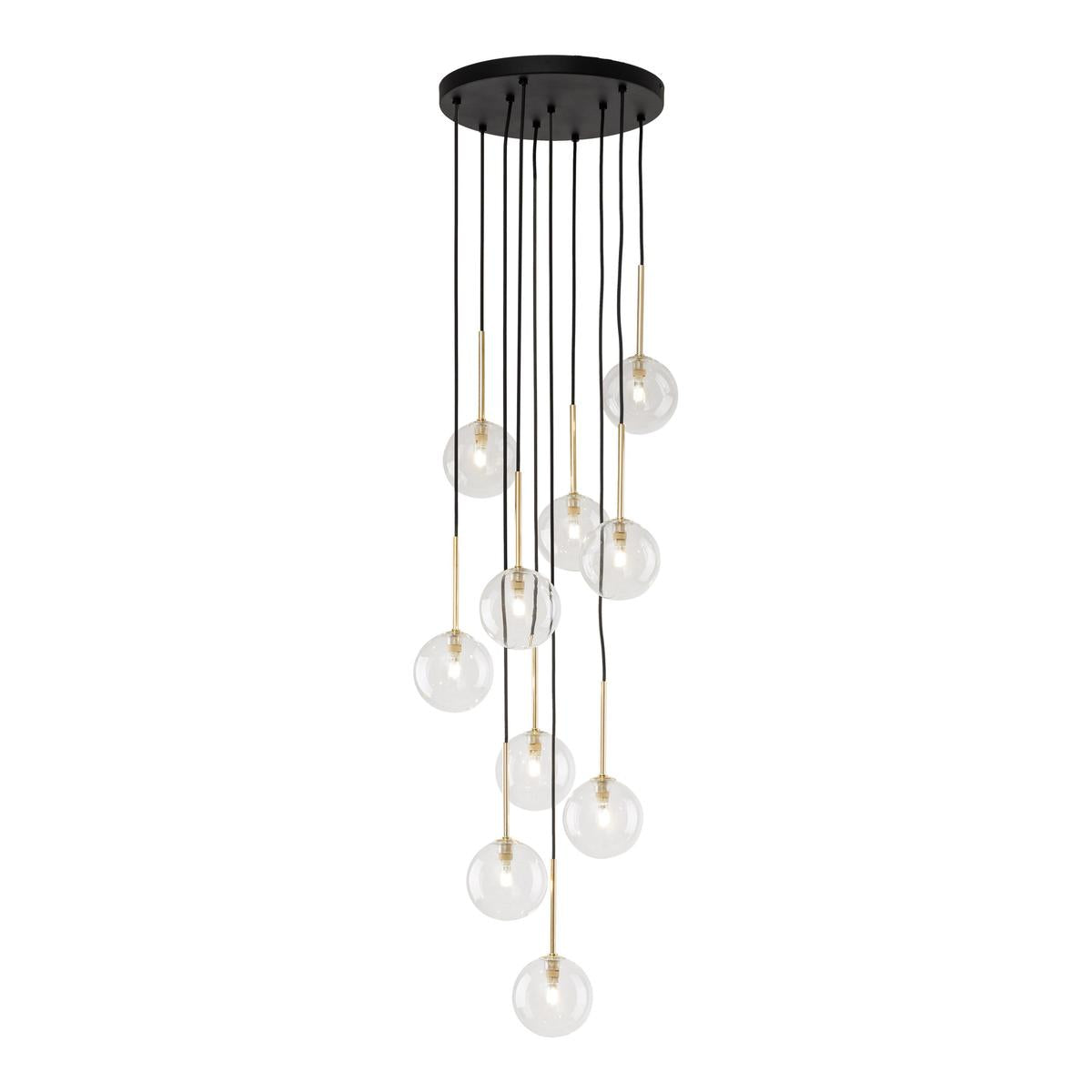 NILOS-lamper er en familie av designer-pendellamper med et moderne og elegant utseende. De er preget av gjennomsiktige glasskjermer som gir utmerket lysspredning. Hver lampe har også en gullhylse ved skjermen, som gir en luksuriøs aksent. Høyden på lampene kan justeres etter dine preferanser, da pendlene med lampeskjermer skaper kaskader av forskjellige lengder. Høydejustering gir oss muligheten til å skape et unikt og individuelt utseende av interiøret vårt.