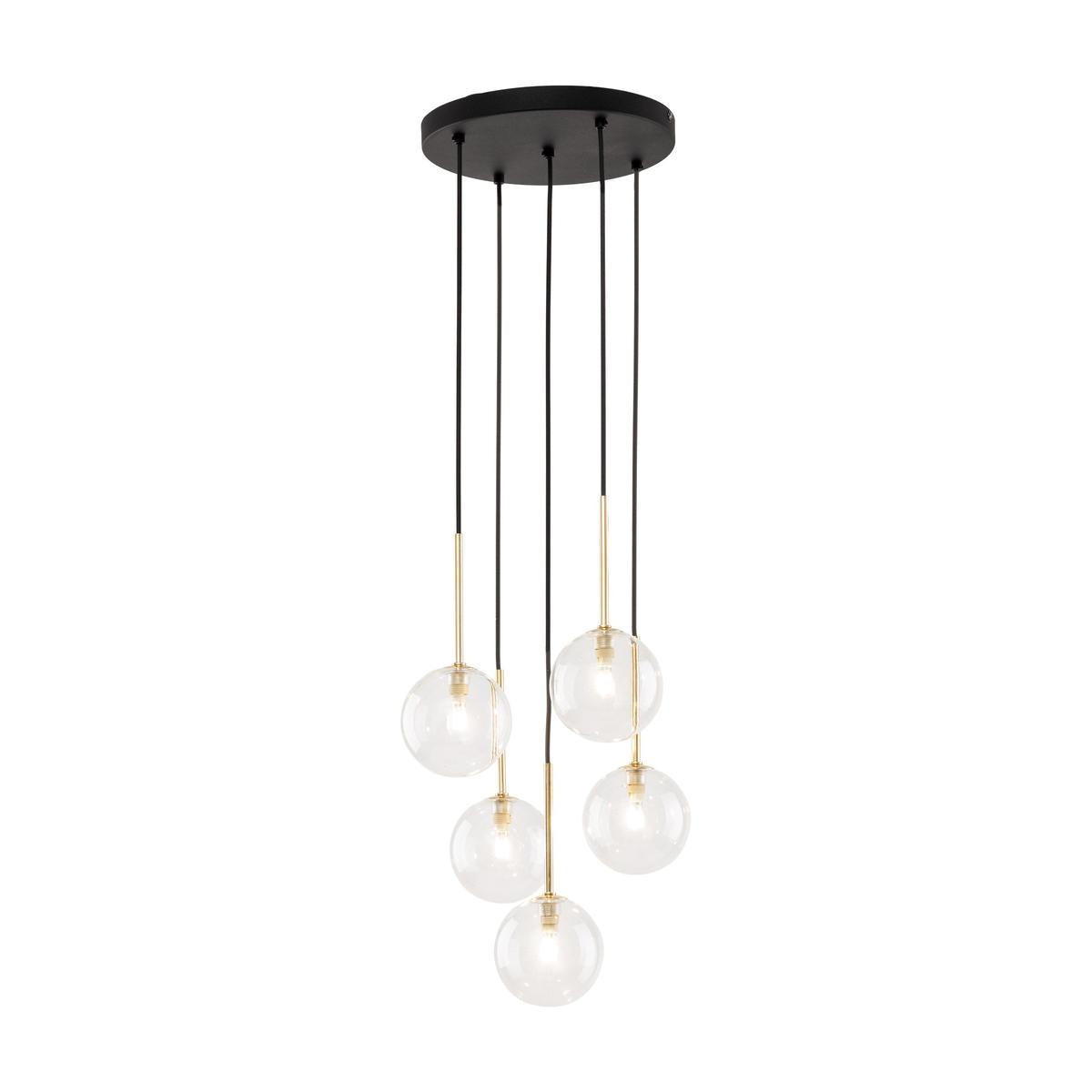 NILOS-lamper er en familie av designer-pendellamper med et moderne og elegant utseende. De er preget av gjennomsiktige glasskjermer som gir utmerket lysspredning. Hver lampe har også en gullhylse ved skjermen, som gir en luksuriøs aksent. Høyden på lampene kan justeres etter dine preferanser, da pendlene med lampeskjermer skaper kaskader av forskjellige lengder. Høydejustering gir oss muligheten til å skape et unikt og individuelt utseende av interiøret vårt.