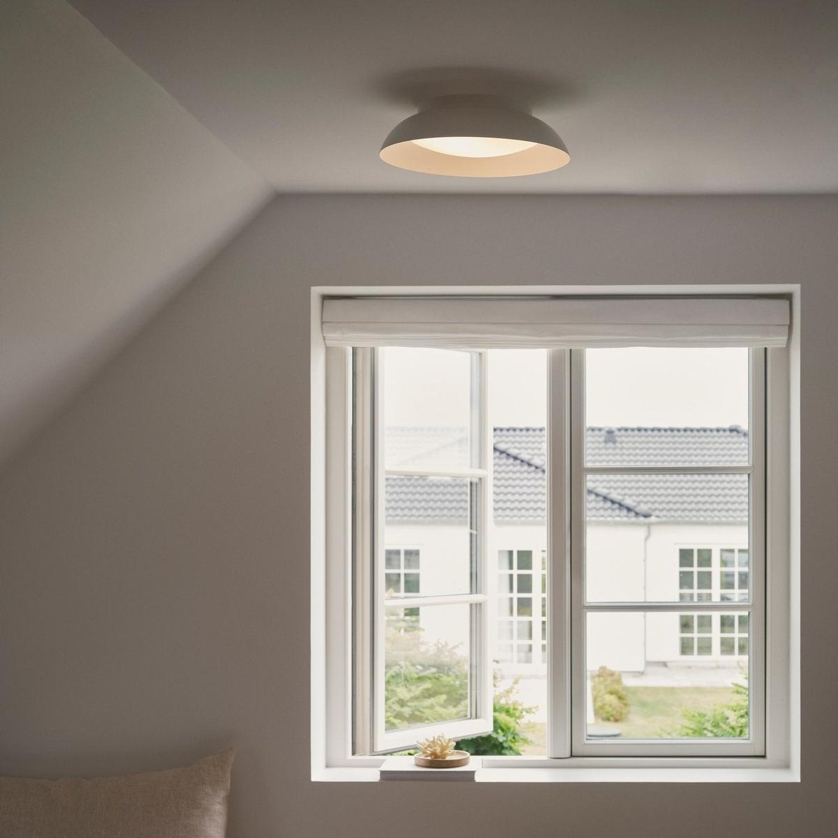 Nivora taklampe har en bred, buet skjerm med matt overflate. Den innebygde diffusoren sprer lyset jevnt og behagelig uten å blende. Ideell til stue, soverom eller entré.