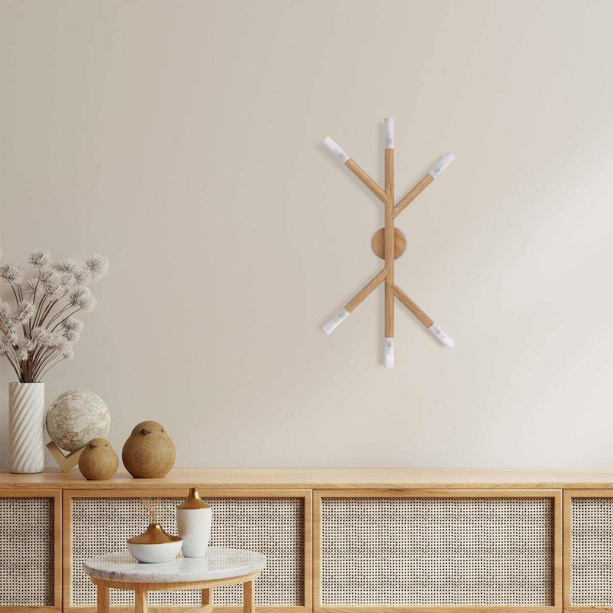 NOBLE lampefamilien er en perfekt løsning for alle som leter etter vakker og original belysning til interiøret. Disse vegglampene er ikke bare funksjonelle, men også fulle av karakter og stil. Laget av tre, børstet furu, NOBLE-lamper vil introdusere en naturlig, rustikk atmosfære til rommet ditt. Treelementene er nøye bearbeidet, noe som gir dem en unik karakter. Tre av høy kvalitet vil garantert vare i mange år, og opprettholde sin unike estetikk. Den siste aksenten i NOBLE-lamper er et glasselement som gir dem eleganse og smak. Glasstilbehør tilfører subtilitet og klasse til lampene. Deres delikate nøytrale farge gjør at de kan tilpasse seg enhver interiørstil. NOBLE-lampene er designet for G9-pærer, noe som gir effektiv og energisparende belysning. Takket være dette kan du nyte ikke bare det vakre utseendet til lampene, men også energibesparelser og optimal belysning i hjemmet ditt. Er du ute etter moderne, elegante, men samtidig naturlige vegglamper, vil NOBLE-familien være et perfekt valg. Den unike designen vil tillate deg å skape en hyggelig atmosfære i interiøret ditt, som helt sikkert vil tiltrekke oppmerksomheten til gjestene dine og gi deg mye tilfredshet.