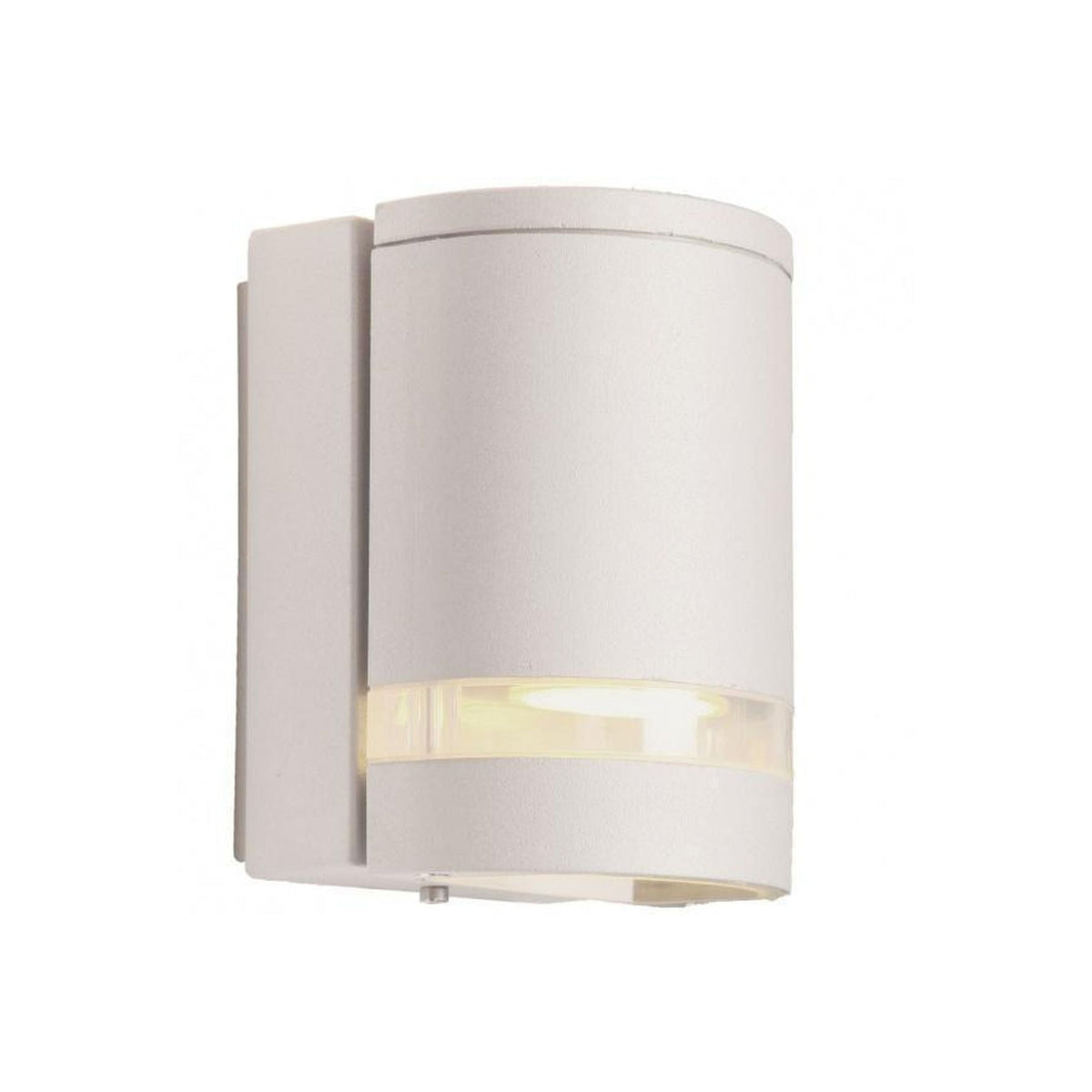 Moderne utelampe med mulighet til til å bruke ledpære. Lampen lyser nedover veggen.
