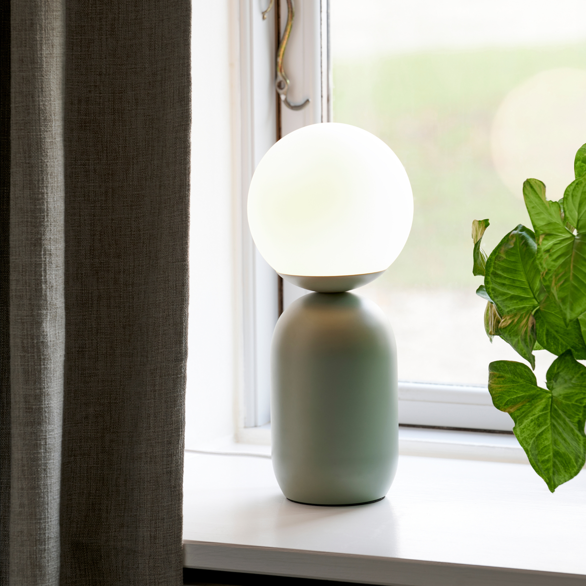 Notti har en organisk og harmonisk form i et lett, nordisk designuttrykk. Her er enkelhet og mykhet nøkkelen – den avrundede, matte foten er en fin kontrast til den hvite kuppelen i opalglass som bidrar til visuelt volum og et mykt og blendfritt lys.