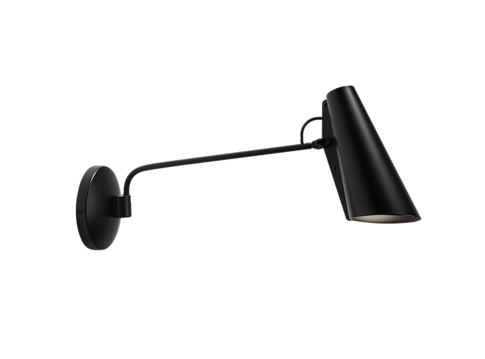 Birdy vegglampe med lang arm ble designet av Birger Dahl i 1952. Like moderne og funksjonell tross sin høye alder. Denne lampen er meget funksjonell, da både armen og hodet er bevegelige slik at en kan styre lyset dit en vil. Her får en direkte lys, uten blending. Egner seg derfor som leselampe og arbeidslampe. Anbefaler Led spot pære i denne.